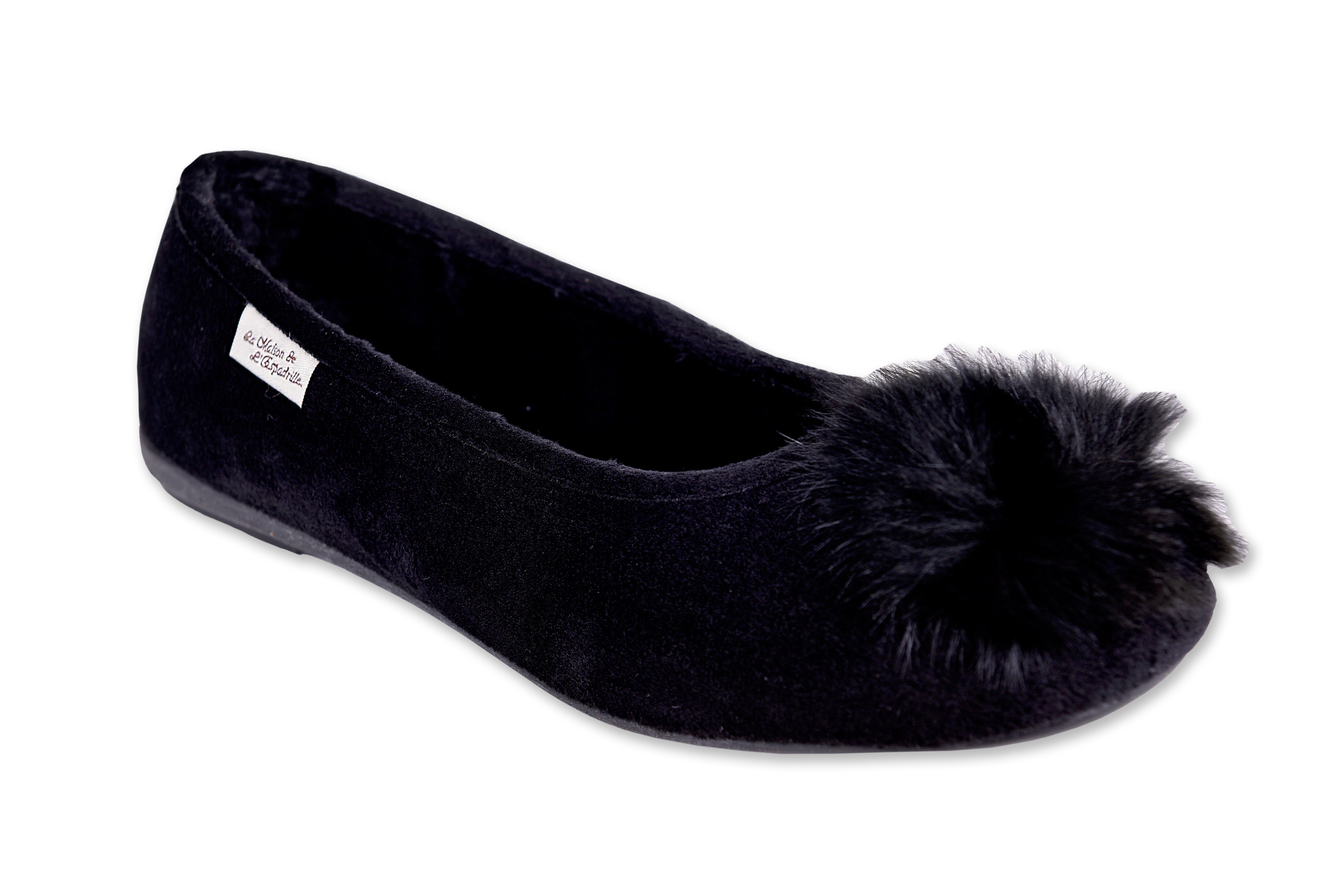 Ballerines – “La maison de l’Espadrille – femme – velours – noir – “modèle Pompom 6056” – tissus très souple – semelles caoutchouc antidérapantes – TAILLES 36 à 40