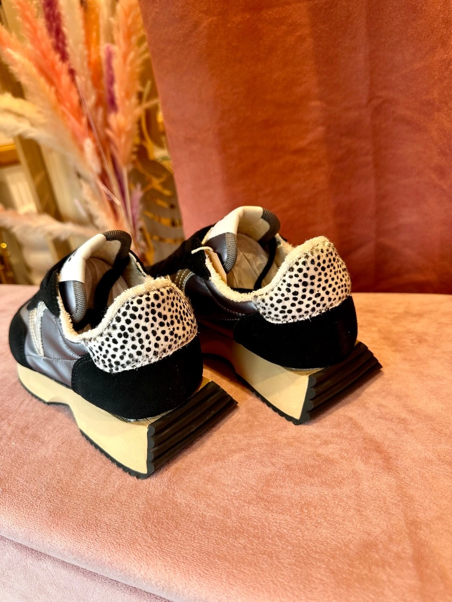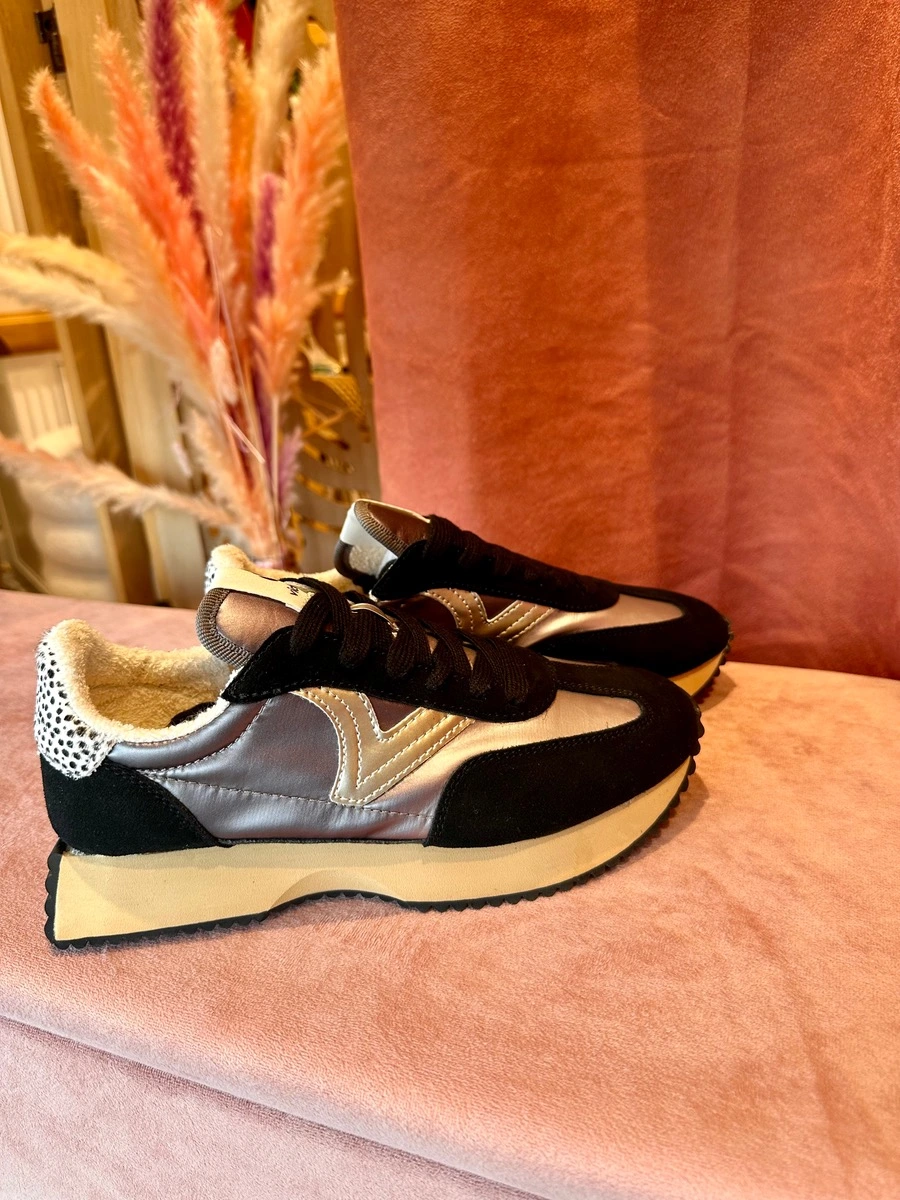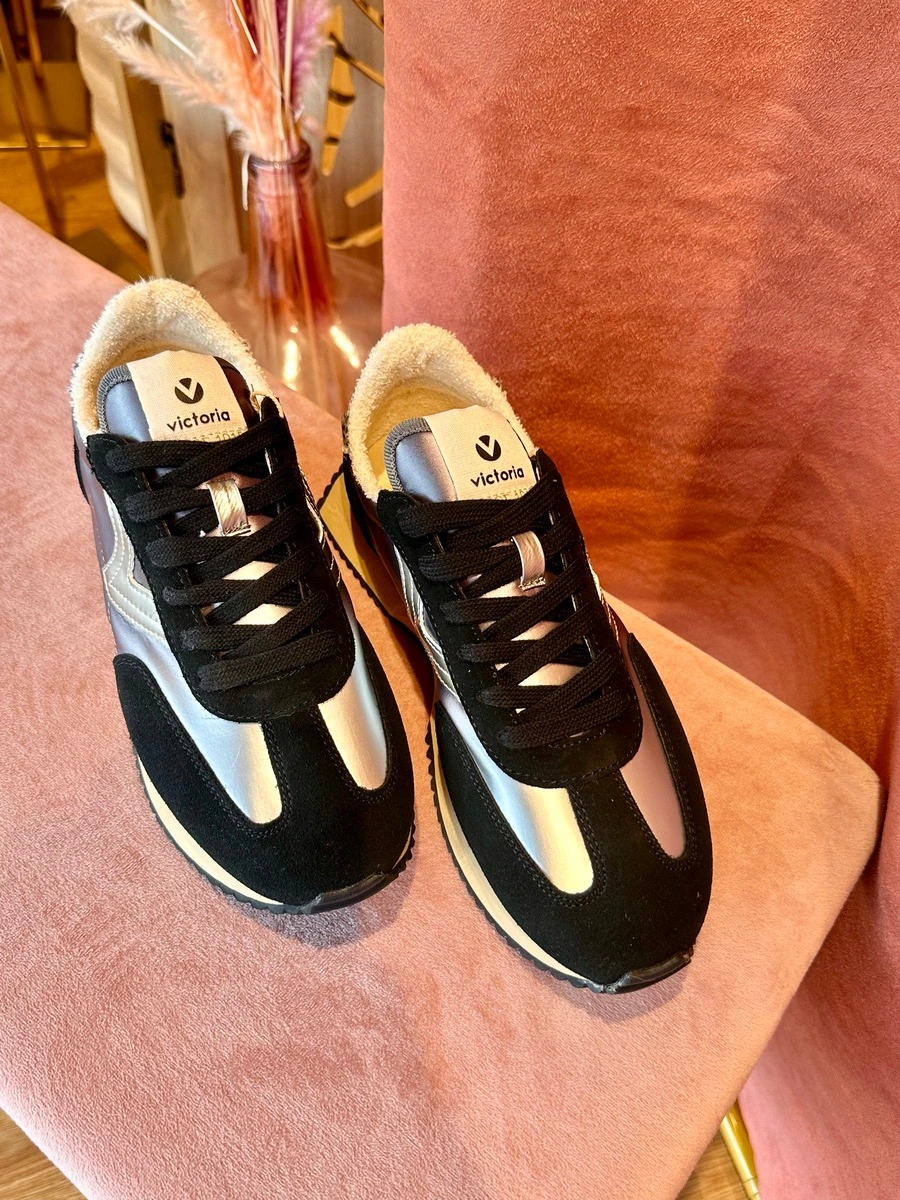 COSMOS, notre paire de sneakers de chez victoria noire et argentée. Avec sa tige en cuir et textile et son coloris argenté, elle se porte facilement au quotidien. Petite info qui a son importance : la doublure est fabriquée en textile esprit moumoute. Un modèle qui comblera les fans de baskets.