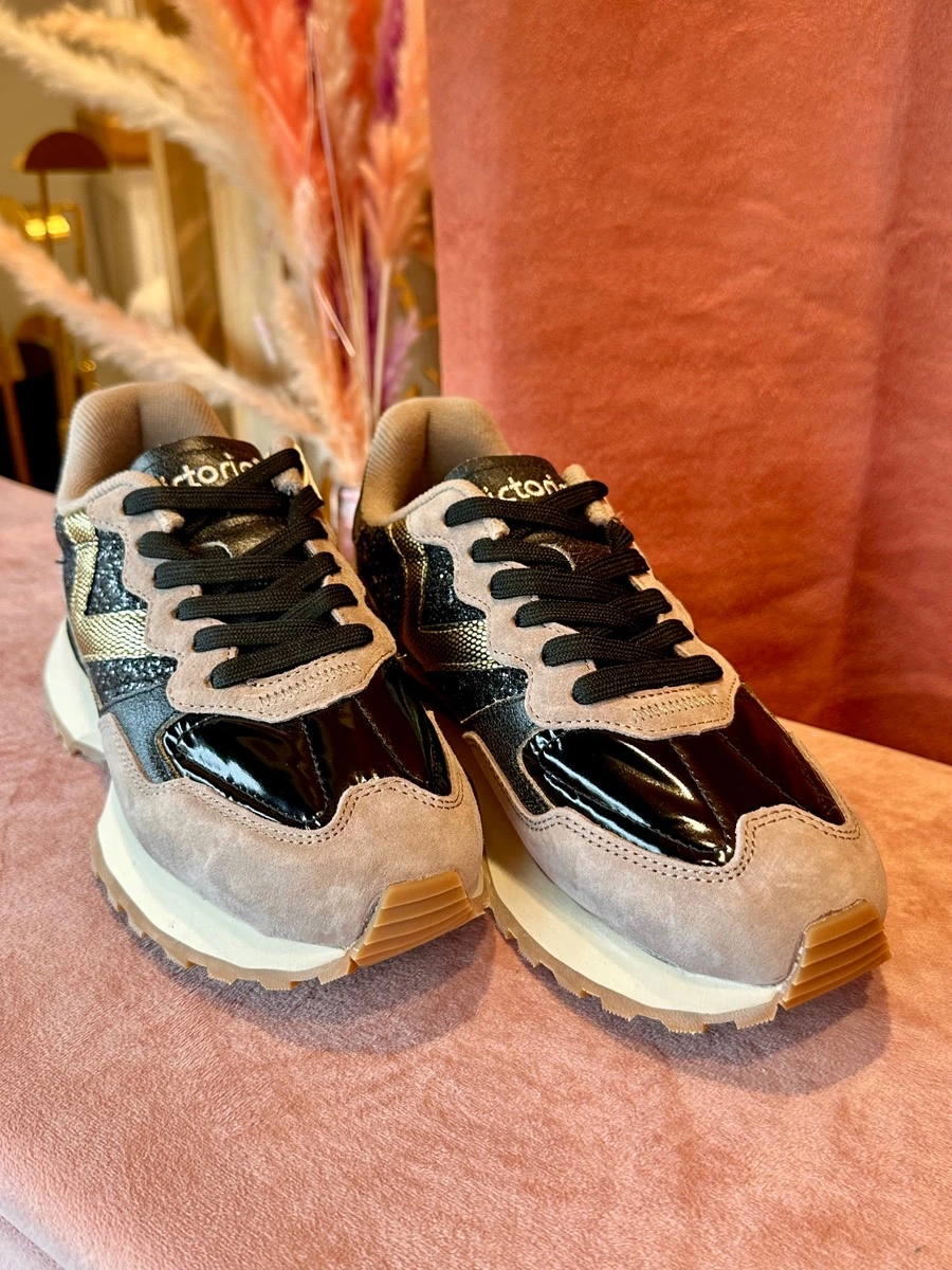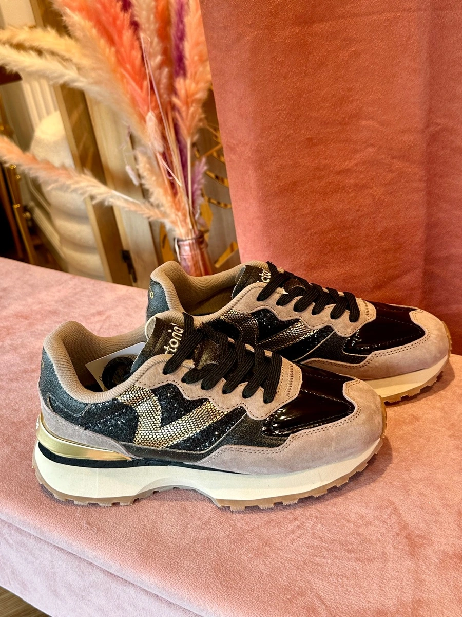 BASKETS VICTORIA GLAM TAUPE / NOIR PAILLETÉES