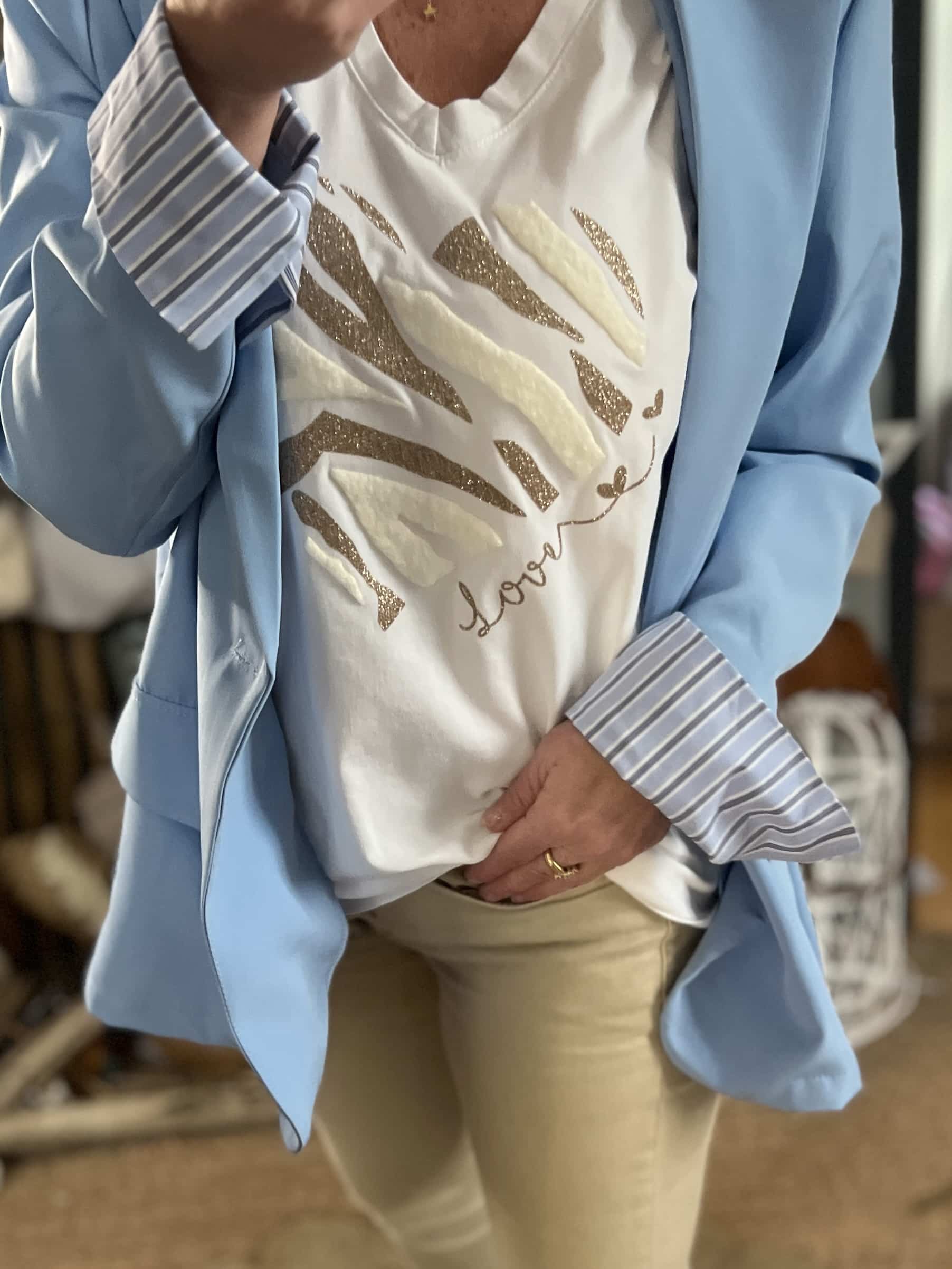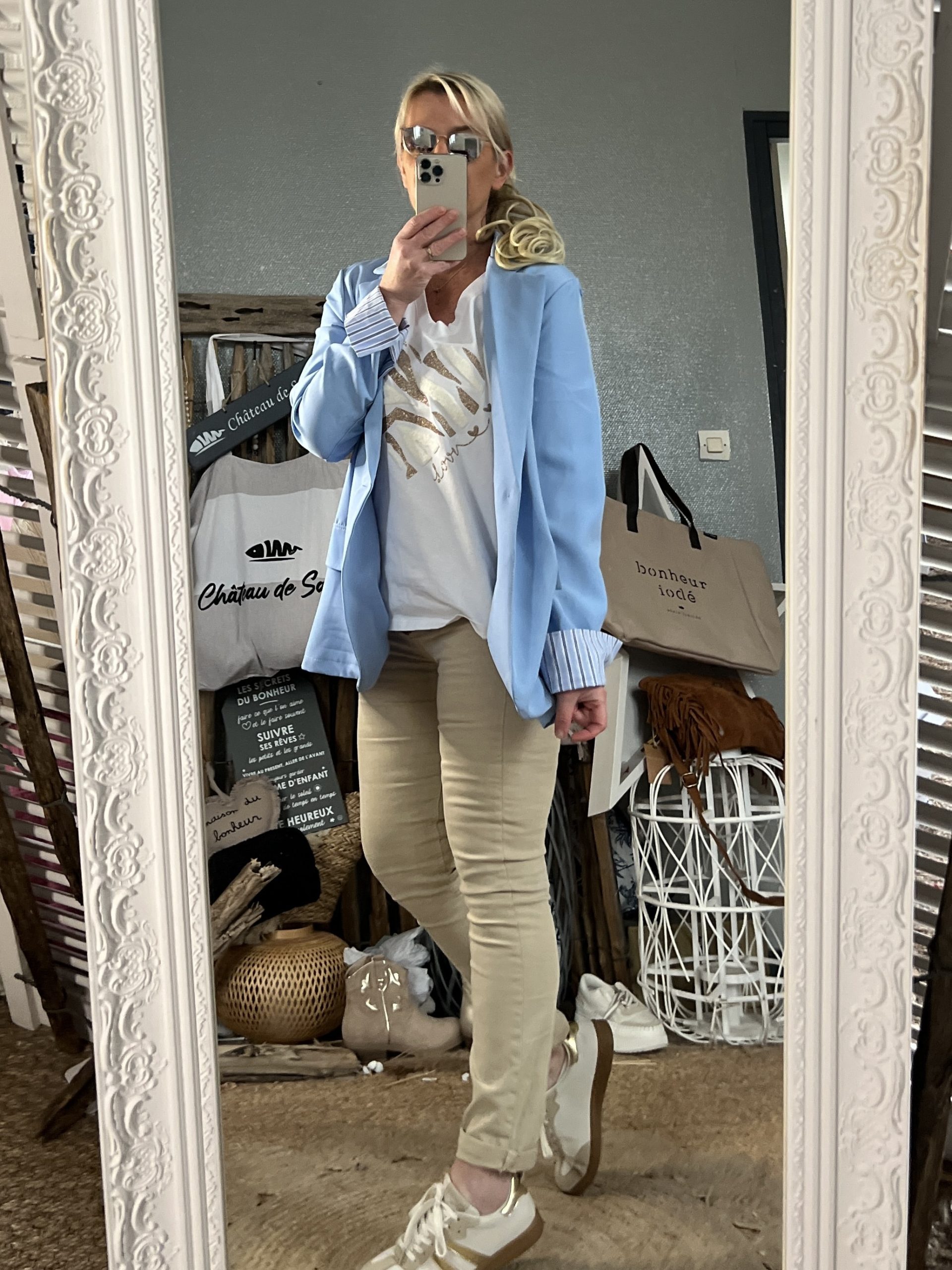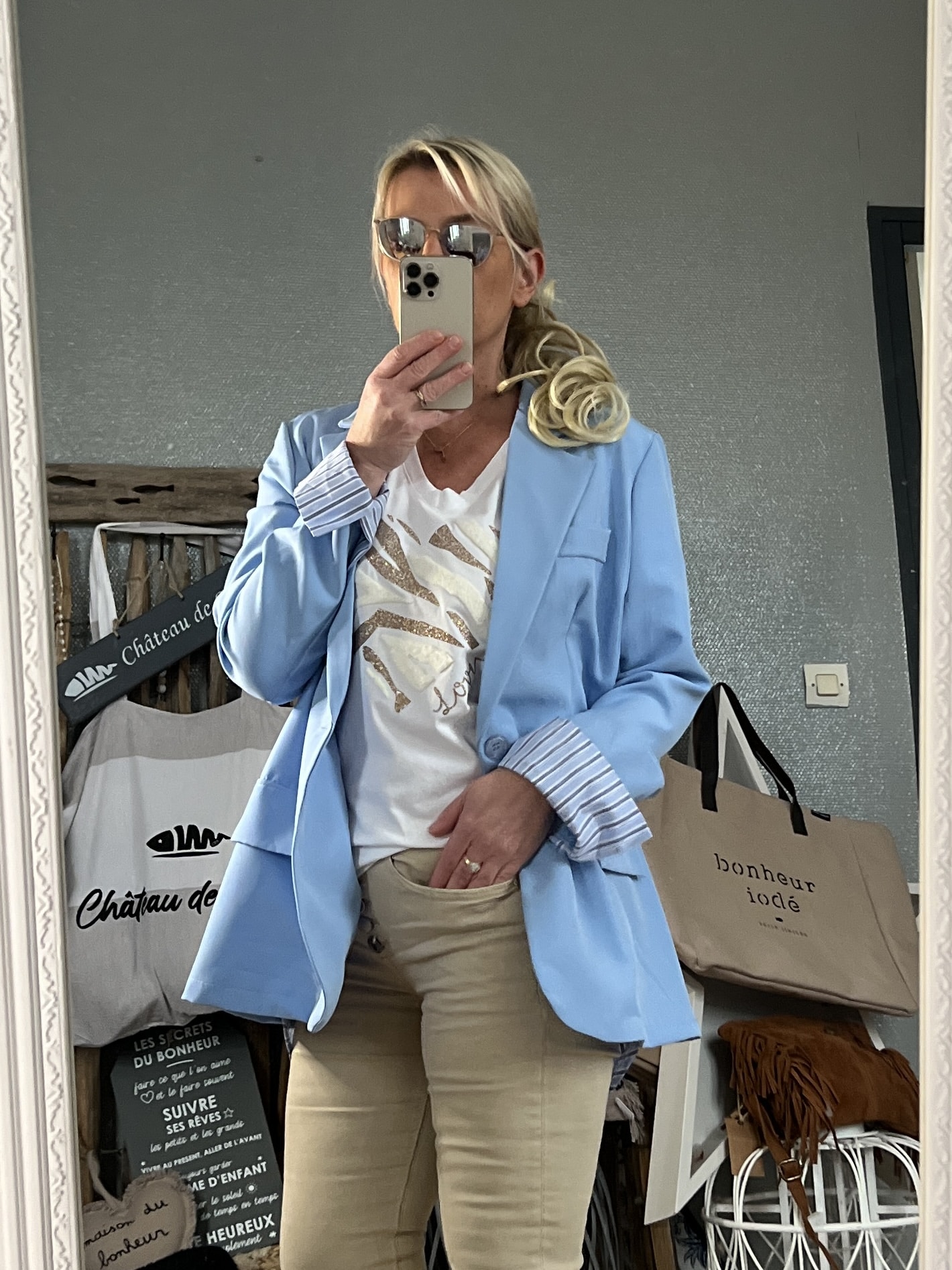 Blazer polyester elasthane taille unique 36-42 dos ouvert avec fausse chemise rayée