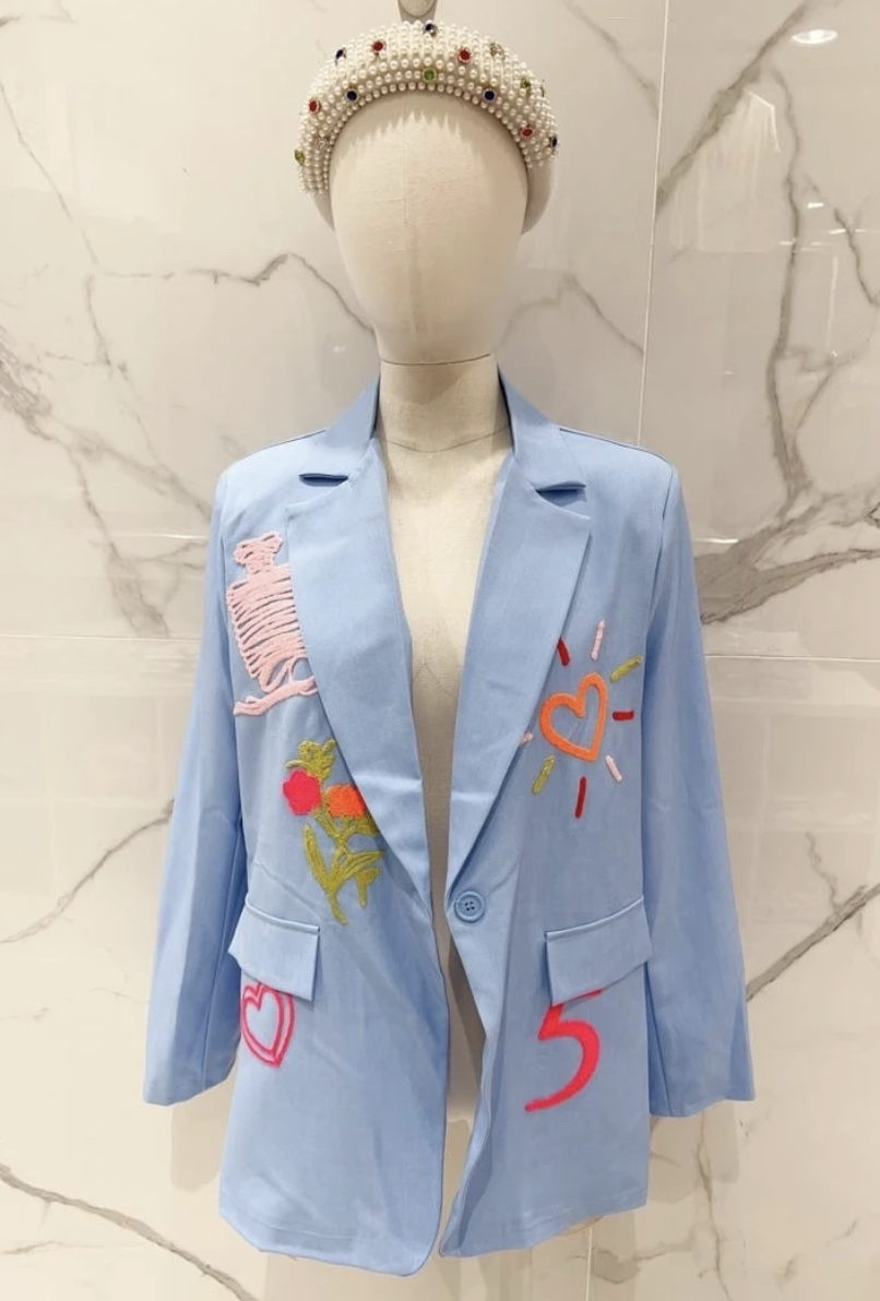 Le Blazer SUN se combine facilement avec toutes vos tenues. Portez-le avec un pantalon ou une jupe pour un look professionnel et soigné. Associez-le à un jean et un top simple pour un style casual chic et moderne. Les touches colorées donnent du caractère à vos ensembles et permettent de créer un style qui attire les regards tout en restant élégant.