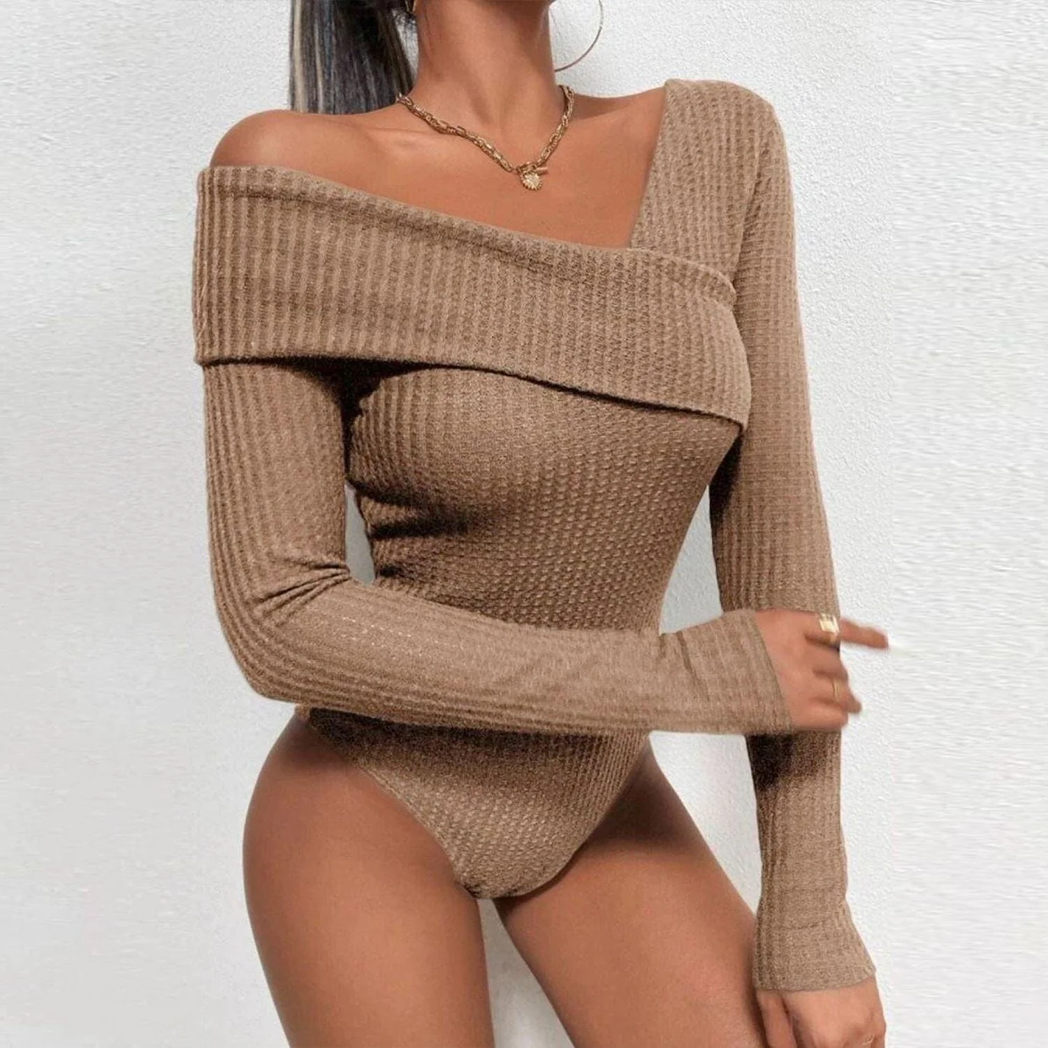 Body asymétrique manches longues, une pièce qui réinvente le jeu de séduction avec une épaule dénudée et un effet drapé. Offert en trois nuances, ce body sans boutons pression épouse parfaitement le corps, garantissant confort et facilité d’enfilage. Sa matière de première qualité et sa légère transparence ajoutent une touche de sophistication, faisant de ce body un choix audacieux mais subtil pour enrichir votre garde-robe.