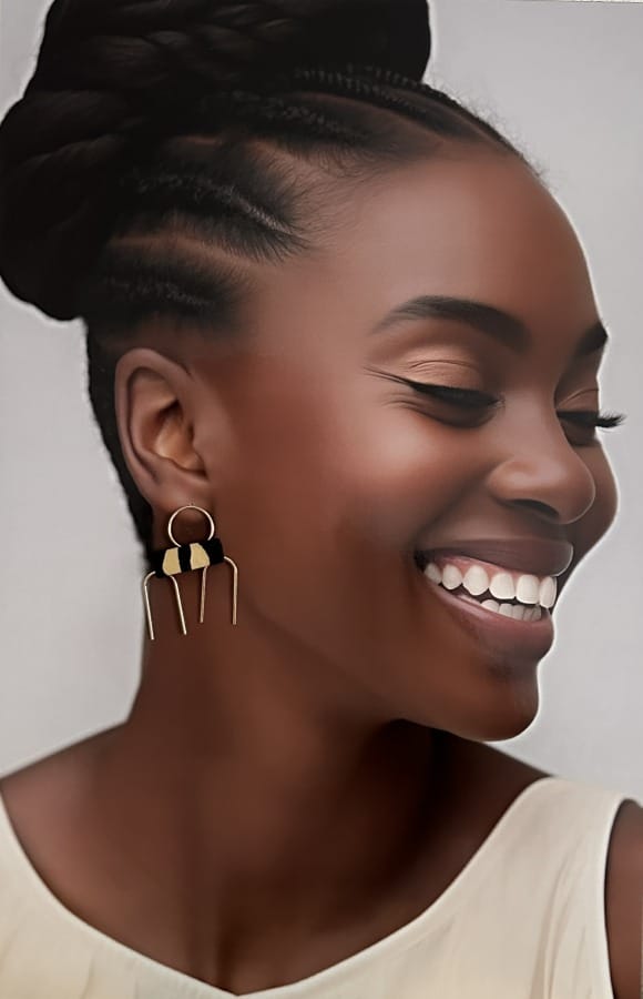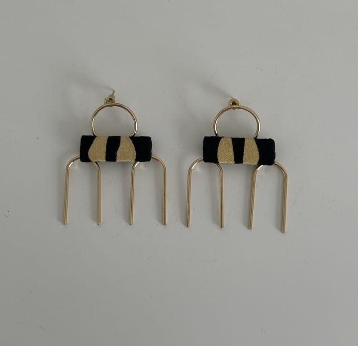 Boucles d’oreilles wax, version dorée, en acier inoxydable, entièrement fabriquées à la main, montées sur un support rigide en wax 100% coton.