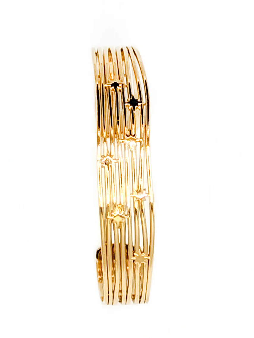 Donnez une touche d’éclat à votre look avec ce bracelet Mon Etoile ajustable en acier doré. Les rayons du soleil seront distillés à vos poignets, ajoutant à votre audace un étincelant soupçon de luxe !
