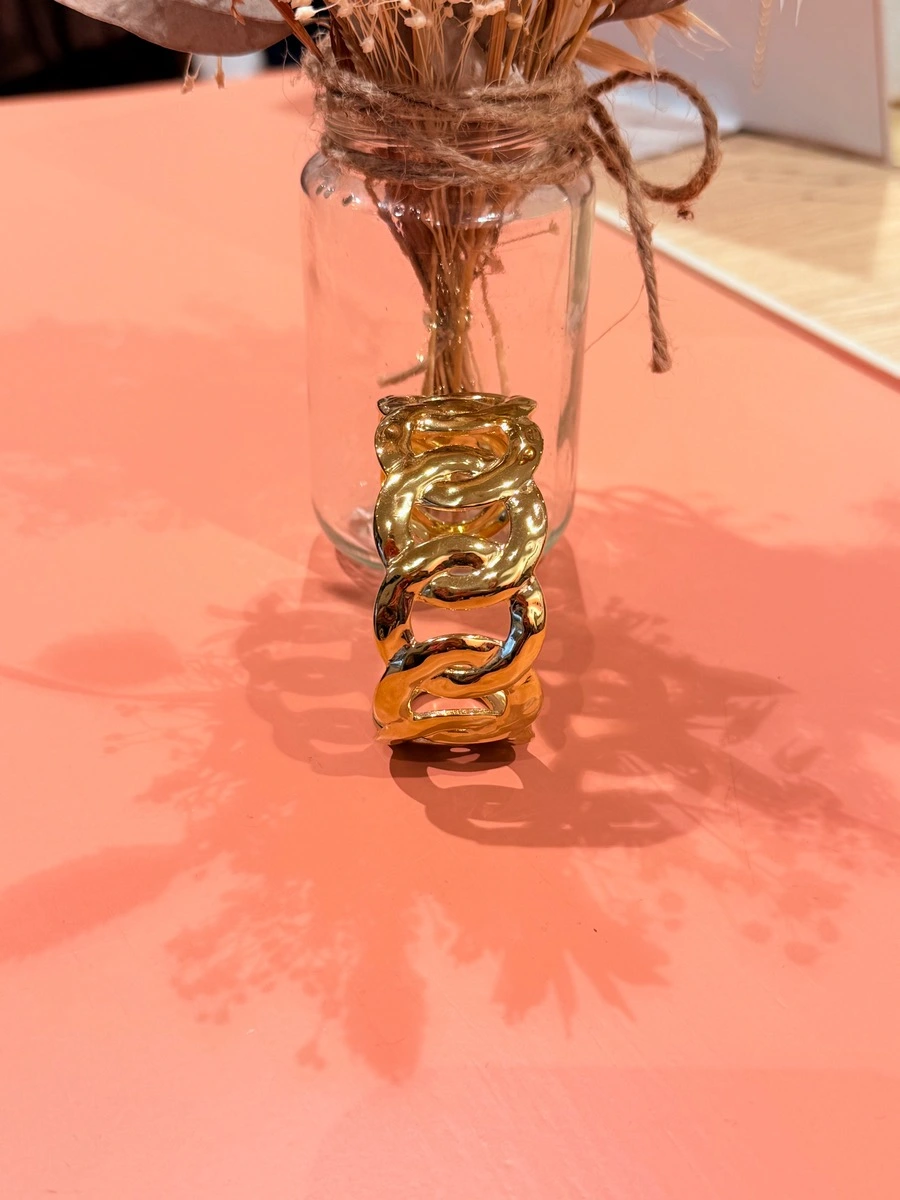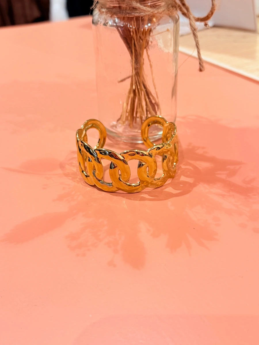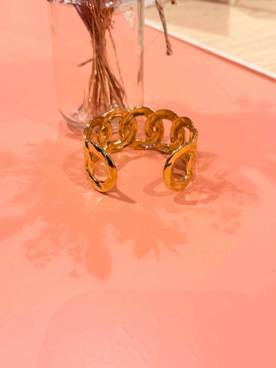 LILIAN, le bracelet manchette doré qui séduit par son design chaîne aux maillons larges et organiques. À la fois moderne et audacieux, il habille instantanément le poignet.