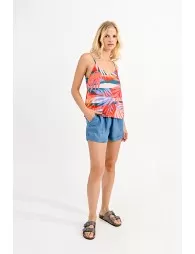 Optez pour le Caraco col V de la marque Molly Bracken. Il est l’incarnation de l’élégance estivale avec une touche exotique. Conçu pour la femme moderne en quête de style et de confort. Ce caraco arbore un décolleté flatteur en V, mettant en valeur la silhouette avec subtilité et raffinement. Les motifs de palmiers dispersés sur le tissu apportent une note tropicale et ensoleillée. Évoquant les douces brises estivales et les paysages paradisiaques.
