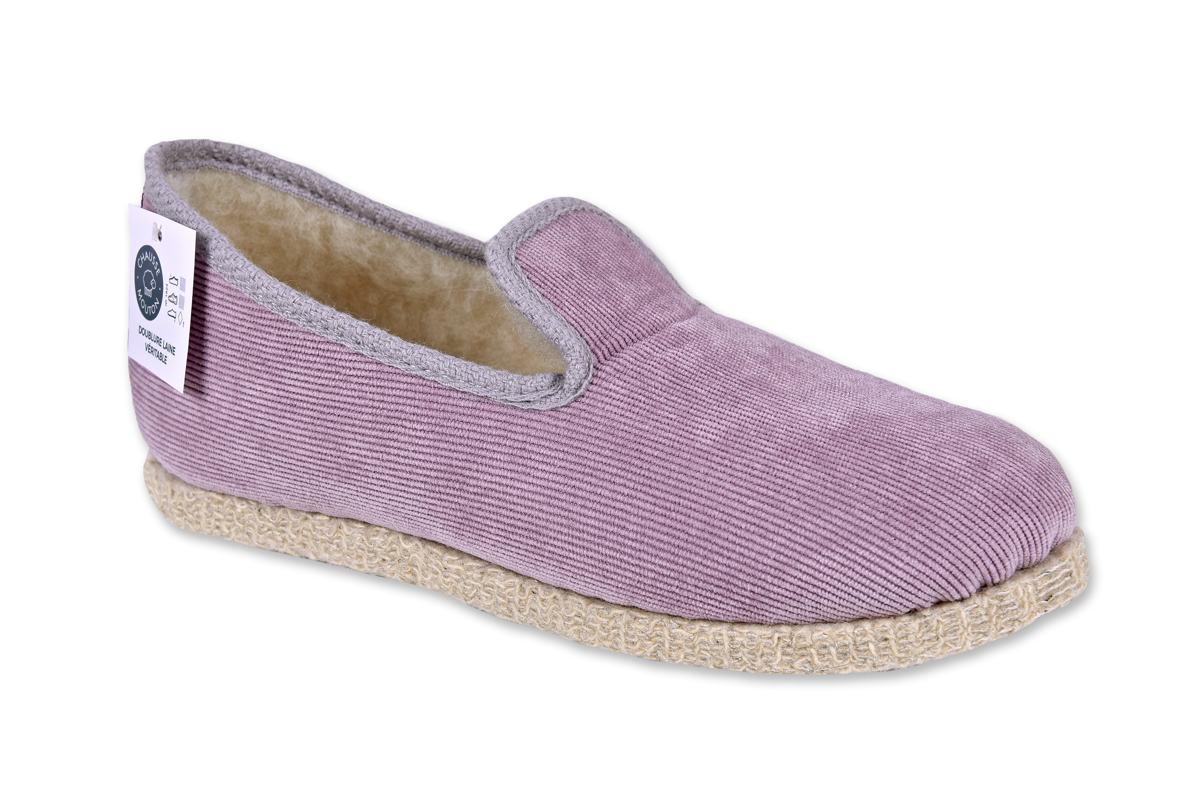 Charentaise “Chausse Mouton” – femme – mauve – “modèle Cotelé” – semelles feutre – intérieur fourré laine – TAILLES 36 – 37 – 40 – 41