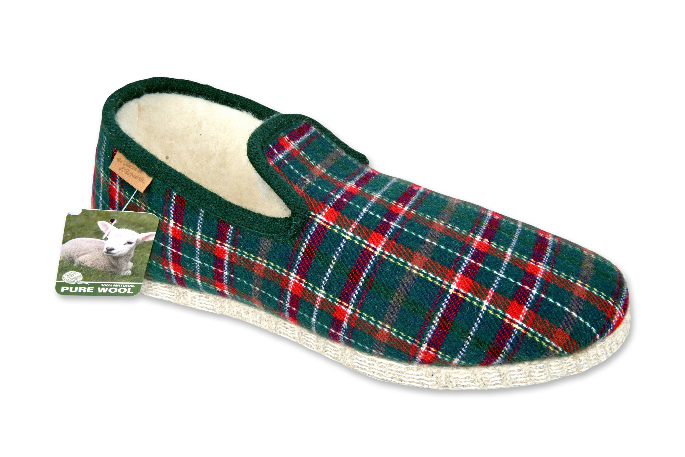 Chausson écossais “La Maison de l’Espadrille” – homme – vert – “modèle Sébastien F126” – semelles feutre 5 chaînes fourrés laine – TAILLES 39 – 42 – 43 – 44
