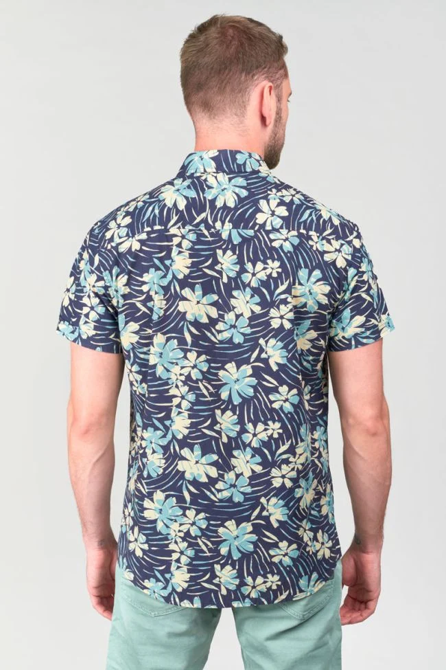 Découvrez la Chemise Bolir de la célèbre marque Le Temps des Cerises. Une pièce essentielle qui allie élégance et originalité pour l’homme moderne. Sa teinte bleu marine profonde est rehaussée par des motifs inspirés de la jungle exotique. Déclinés en blanc et bleu turquoise, apportant une fraîcheur unique et un caractère affirmé à votre tenue. Cette chemise se distingue par son design audacieux, parfait pour ceux qui souhaitent afficher un style à la fois chic et décontracté.