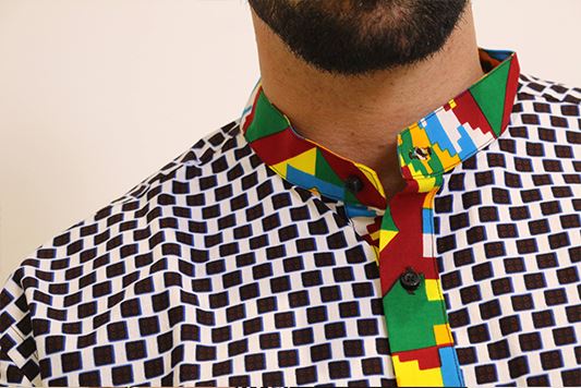 Chemise homme à carreaux tissu wax à motif carreaux et kenté