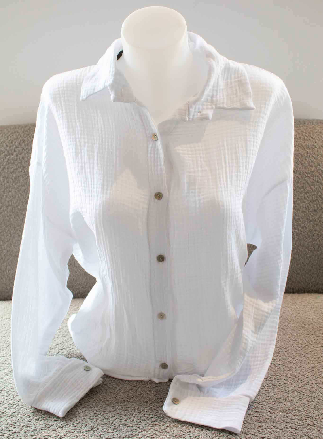 De couleur blanche, cette chemise s’impose comme un basique intemporel et polyvalent. Facile à porter en toute saison. Elle se marie aisément avec un jean, un pantalon fluide ou une jupe pour composer des looks aussi bien professionnels que décontractés. Sa coupe fluide et sa matière aérienne permettent une grande liberté de mouvement, tout en sublimant la silhouette avec naturel.