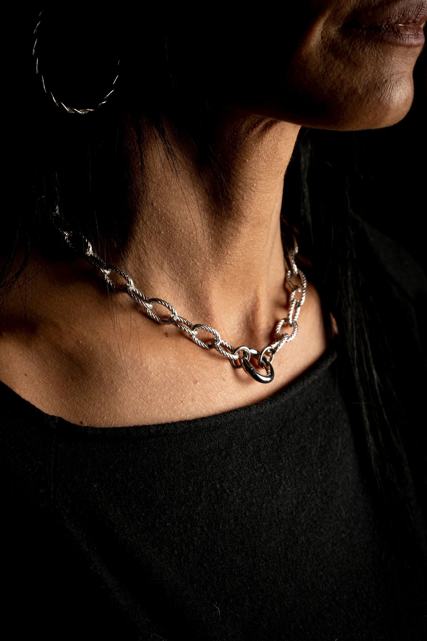 Défiez-vous avec le collier argenté en acier Bonneval! Ce bijou unique et audacieux est conçu pour apporter brillance et style à n’importe quelle tenue. Affrontez la vie avec le collier Bonneval!
