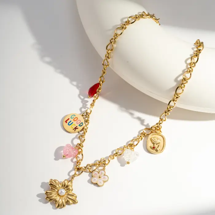 Le doré lumineux met en valeur chaque détail et ajoute une touche chic à vos tenues, qu’elles soient décontractées ou habillées. Portez-le avec une robe lors d’une soirée, un chemisier élégant au bureau ou un simple t-shirt pour le quotidien. Les fleurs expriment la féminité et la délicatesse, tandis que la perle apporte une note de sophistication intemporelle.