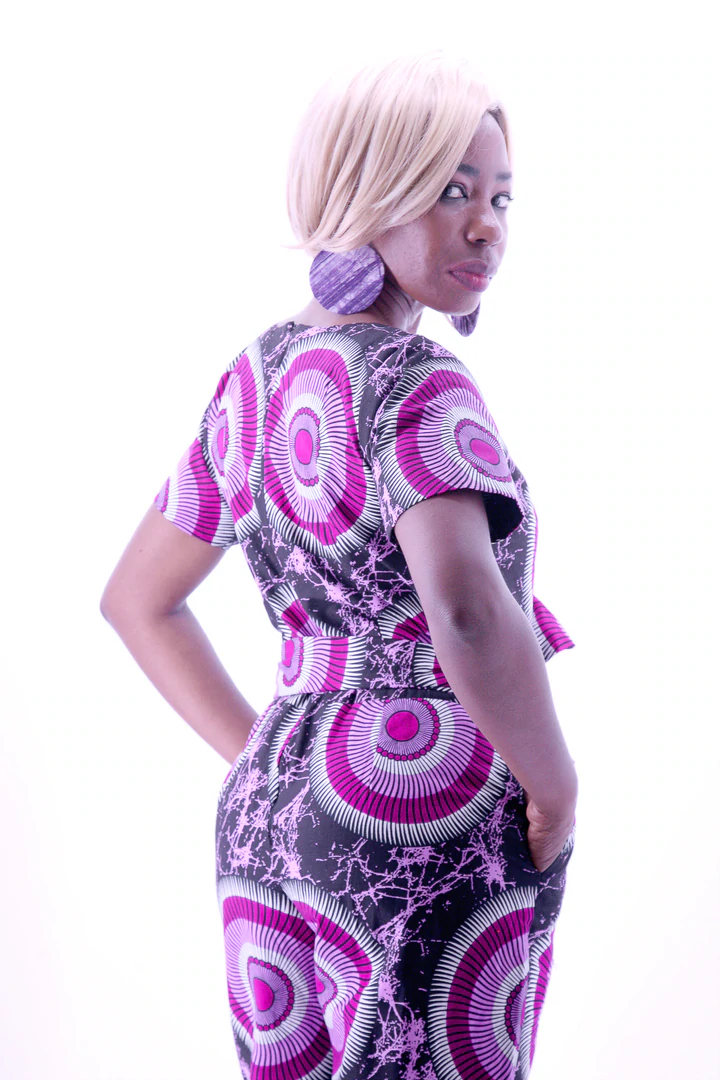Combinaison pantalon en wax, manches courtes et col rond. Bien dans la tendance, elle vous met en valeur. On n’aura d’yeux que pour vous !
