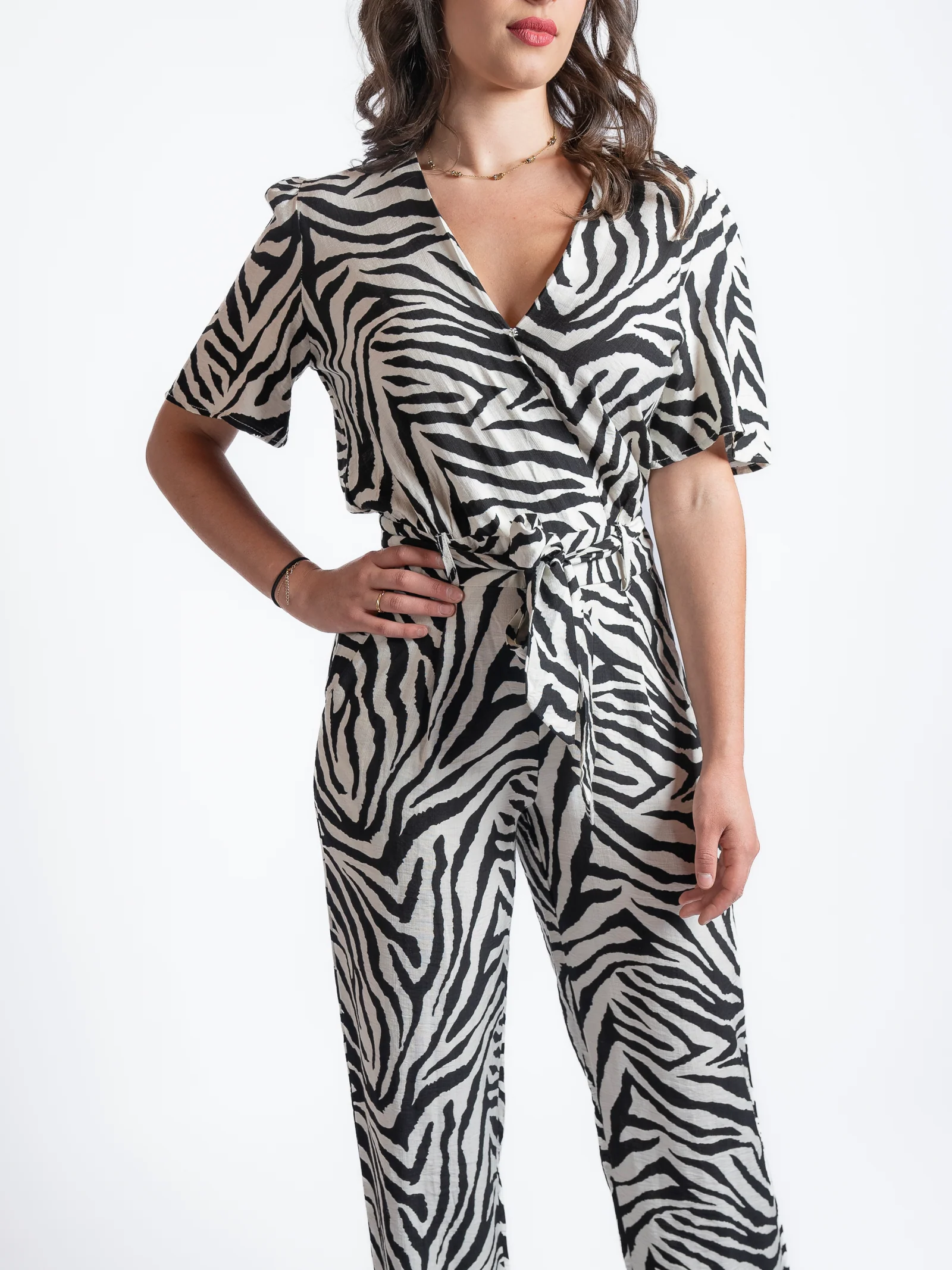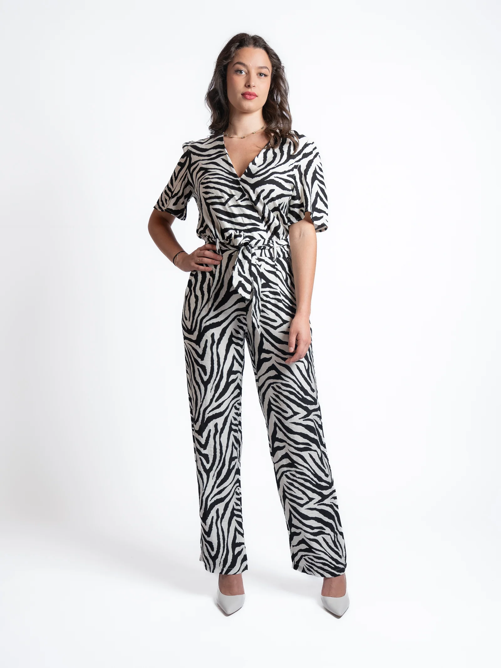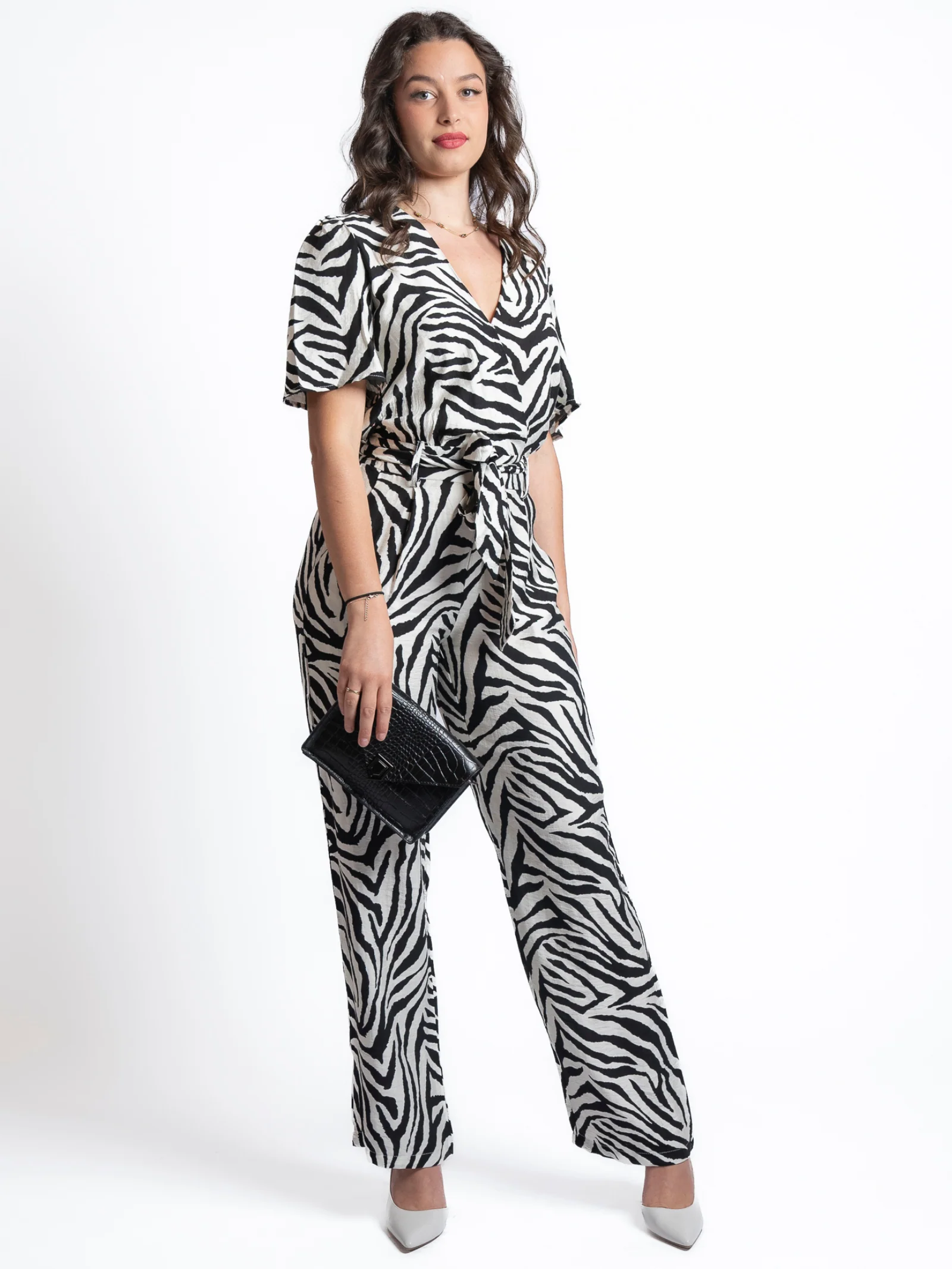 Composition : 75% viscose, 25% nylon – Motif : zébré – Style : combinaison – Poche centrale : non – Couleur : noir et blanc – Ceinture : oui – Poches : oui – Tailles existantes : S/M et M/L- Entretien : lavage en machine 30° max conseillé