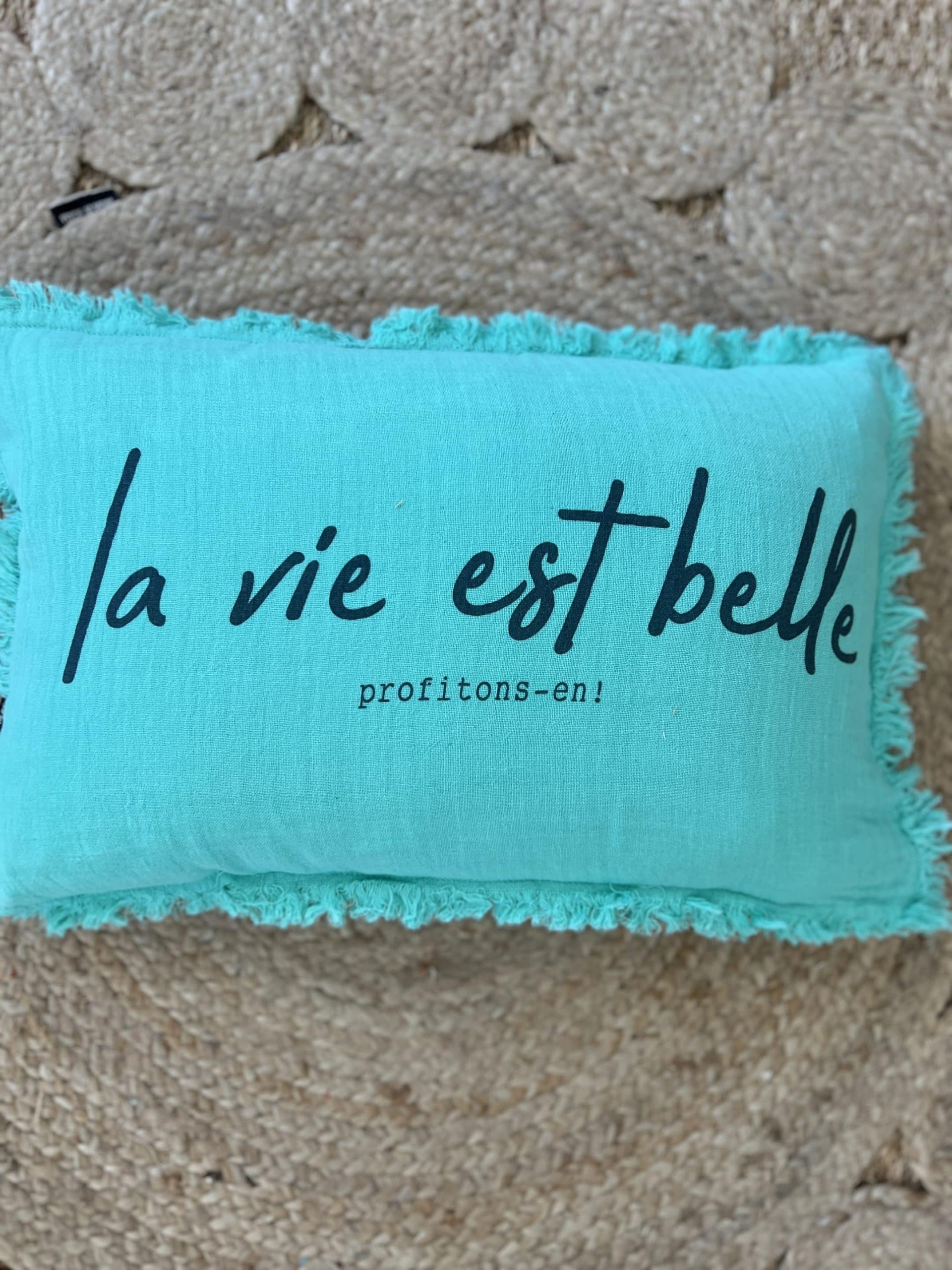 Coussin coton frange déhoussable 52×32 Fabrication française