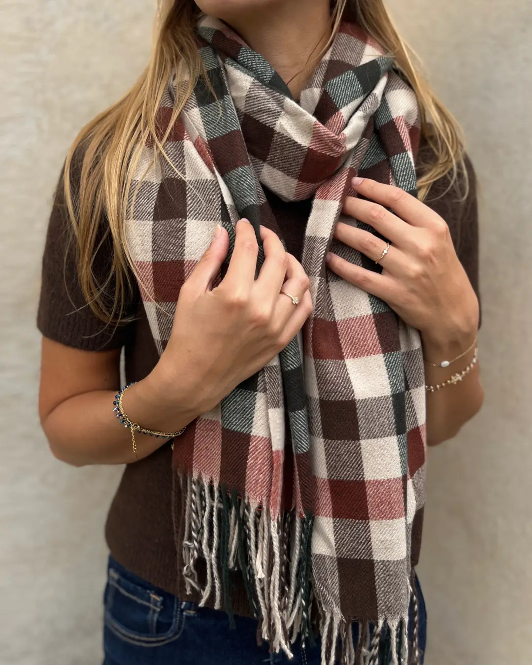 👗 Contrairement à une écharpe unie, celle-ci offre beaucoup plus de liberté pour composer vos looks : un pull beige, un manteau vert ou un sac marron, tout s’accorde naturellement.