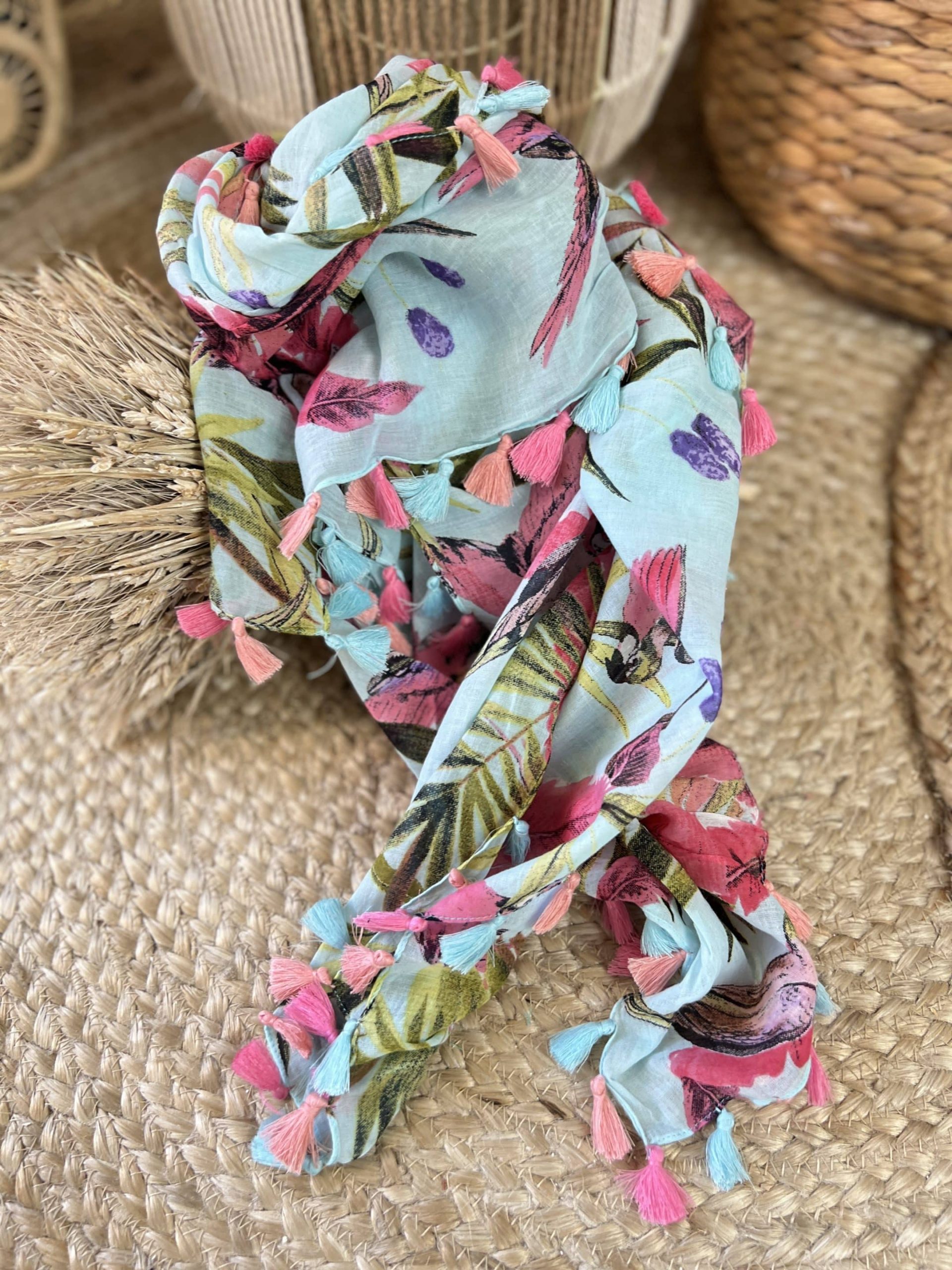 Echarpe carré pompons