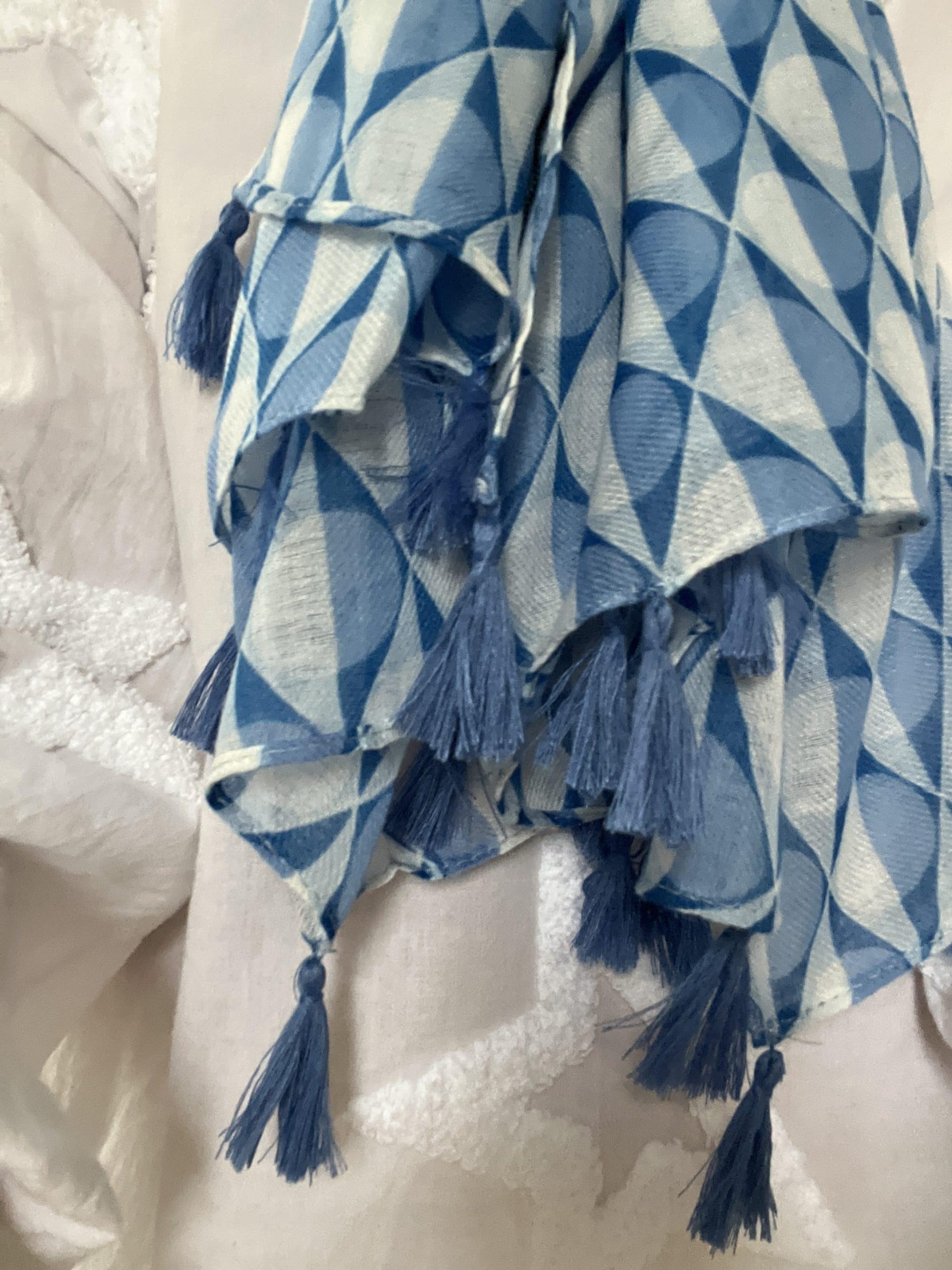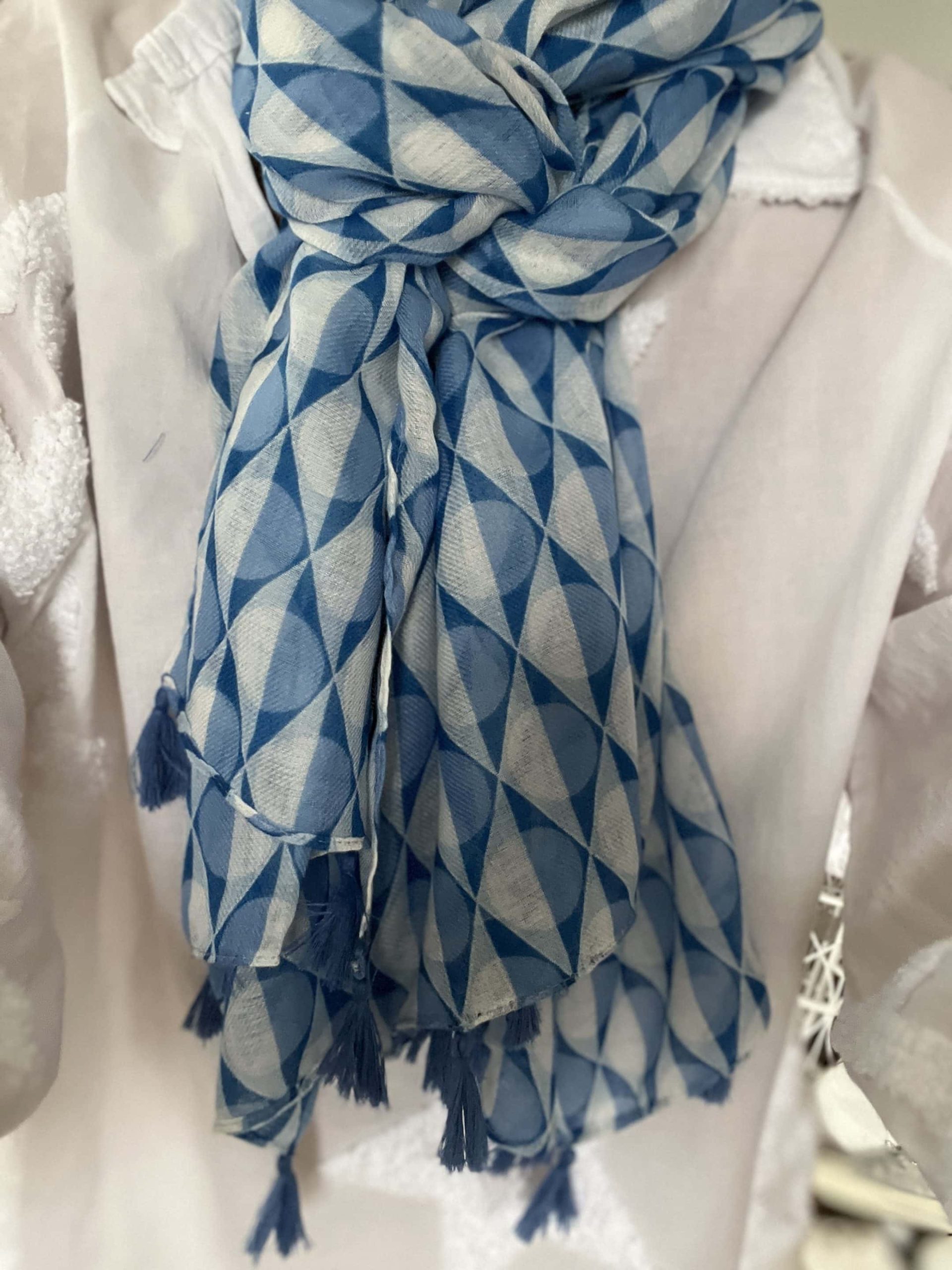 Foulard En mélange de 50% viscose et 50% coton, cet accessoire de 90cm x 180cm ajoute une touche ludique à votre style avec son motif écailles, complété par des détails de pompons pour une élégance décontractée.