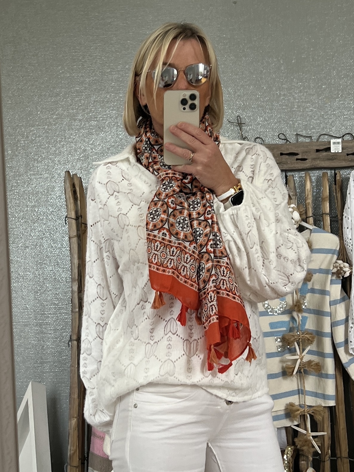 Foulard En mélange de 50% viscose et 50% coton, cet accessoire de 90cm x 180cm ajoute une touche ludique à votre style avec son motif écailles, complété par des détails de pompons pour une élégance décontractée.