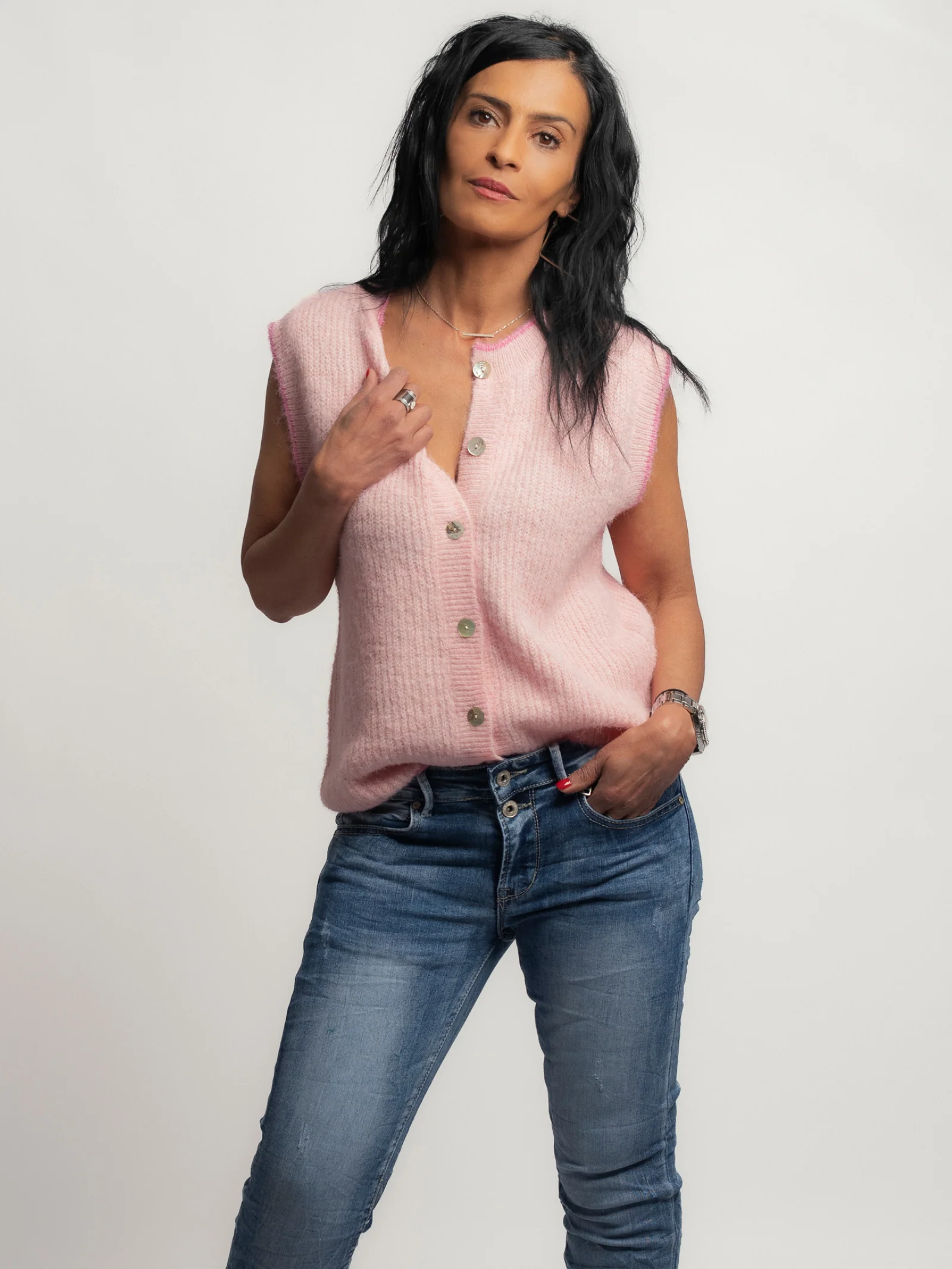 Gilet « Sany » – Rose Poudré & Détails Fuchsia