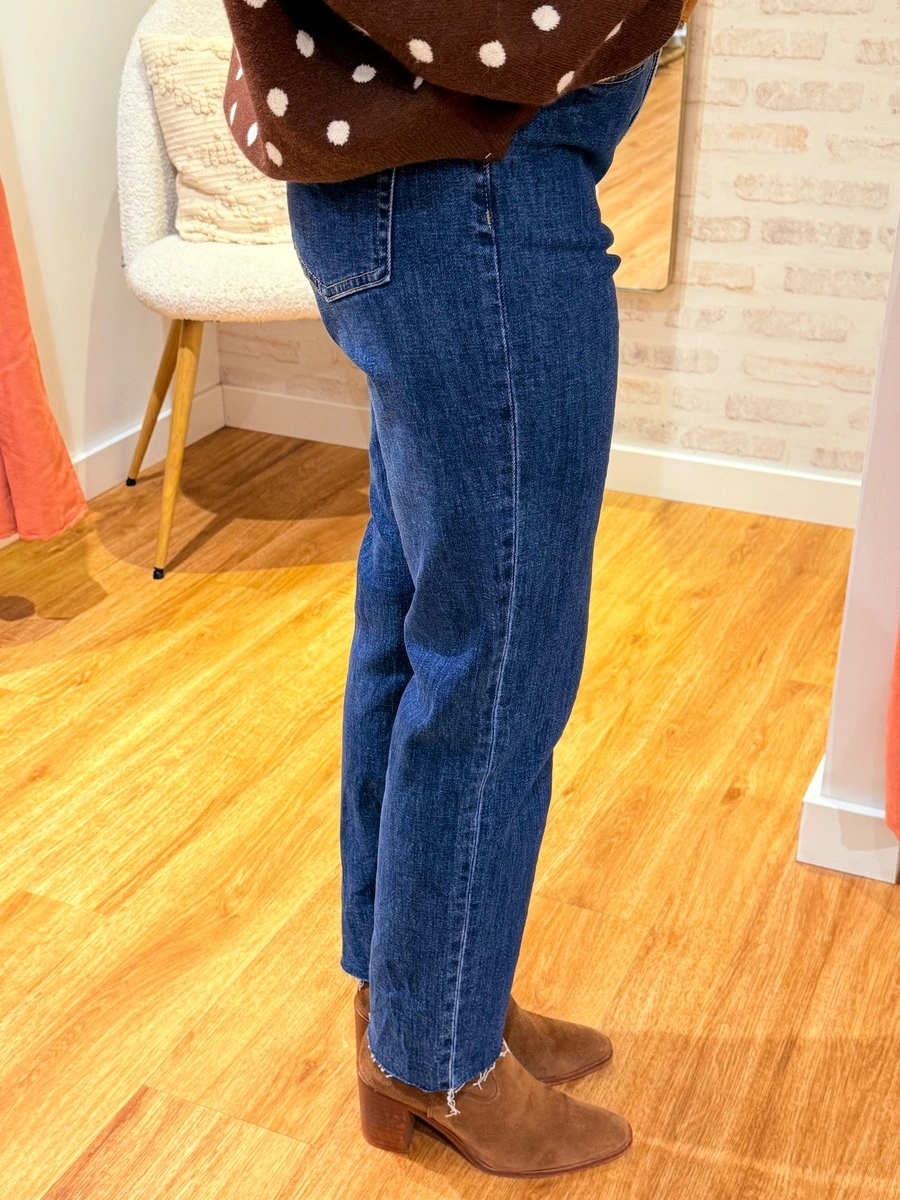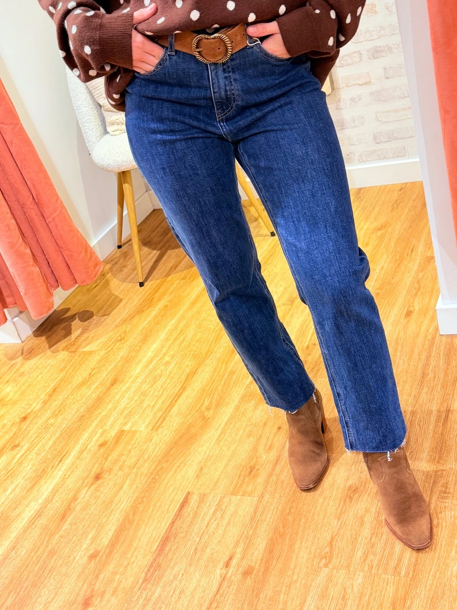MARYLINE, le jean mom-fit qui allie élégance et confort au quotidien. Sa coupe ajustée sans être moulante sublime la silhouette tout en offrant une allure chic et intemporelle. Sa taille haute met en valeur la taille, tandis que les ourlets effilochés ajoutent une touche moderne et décontractée.
