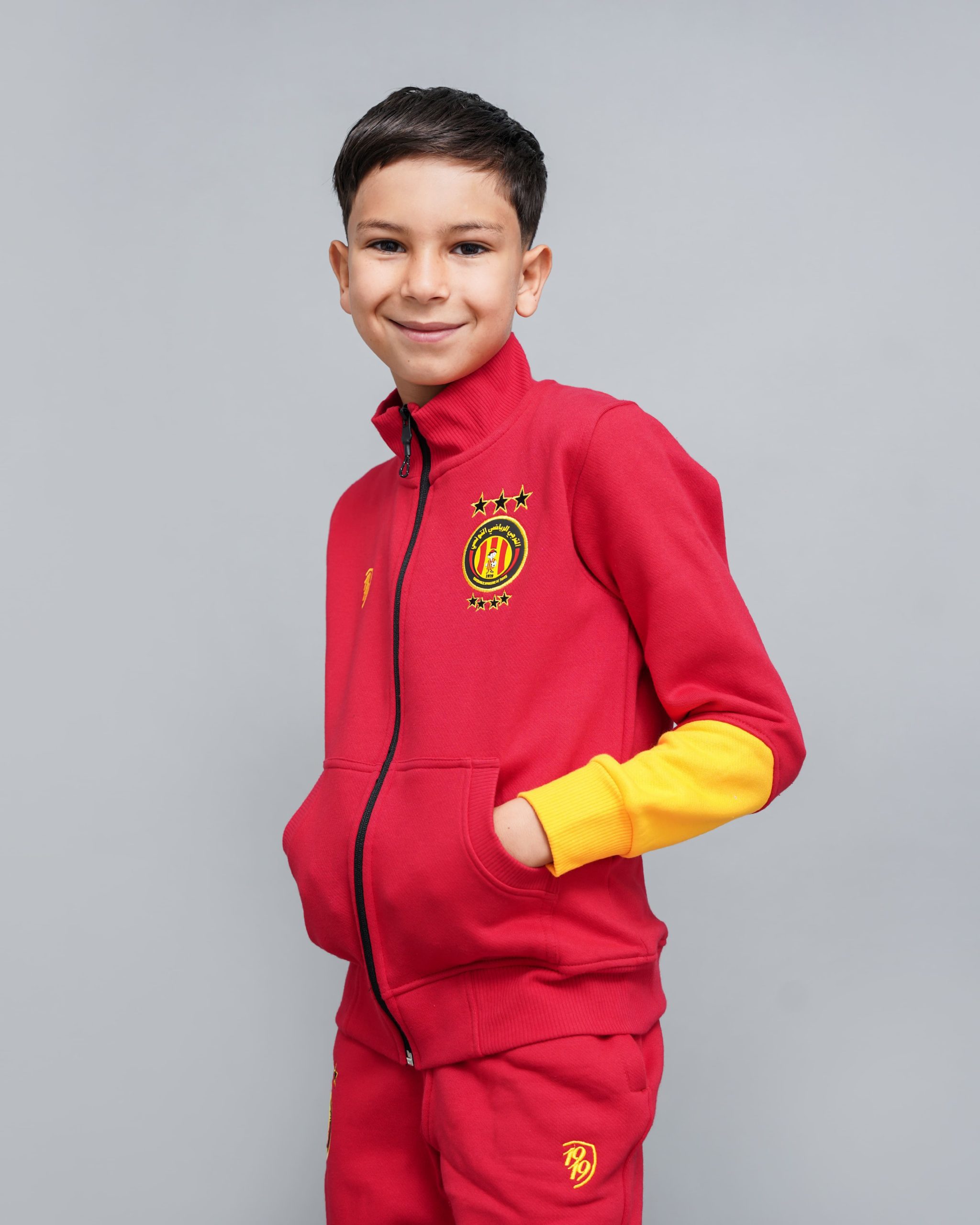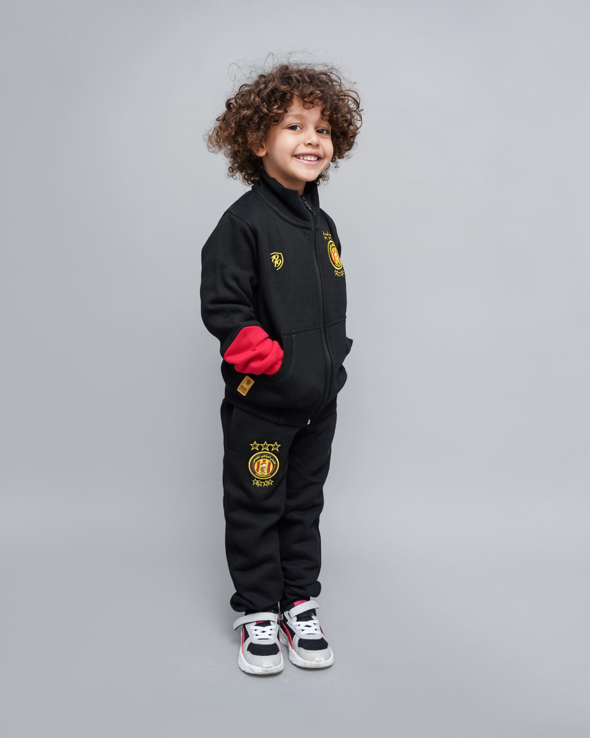 Les broderies du logo du club, les contrastes rouge et jaune et la couleur noire dominante font écho à l’identité visuelle de l’Espérance. Ainsi, ce modèle incarne l’appartenance au club tout en restant adapté au quotidien. Le style casual permet un port aussi bien à l’école qu’en ville.
