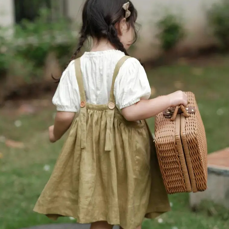 Vous appréciez les looks vintages ? Vous allez tomber en amour devant cette jupe à bretelles pour fille 100% coton. Son adorable design apportera une touche rétro au look du jour de votre petite fille tout en lui assurant un bon maintien et une liberté de mouvements. Facile à mettre et à enlever, elle sera parfaite pour l’autonomie !