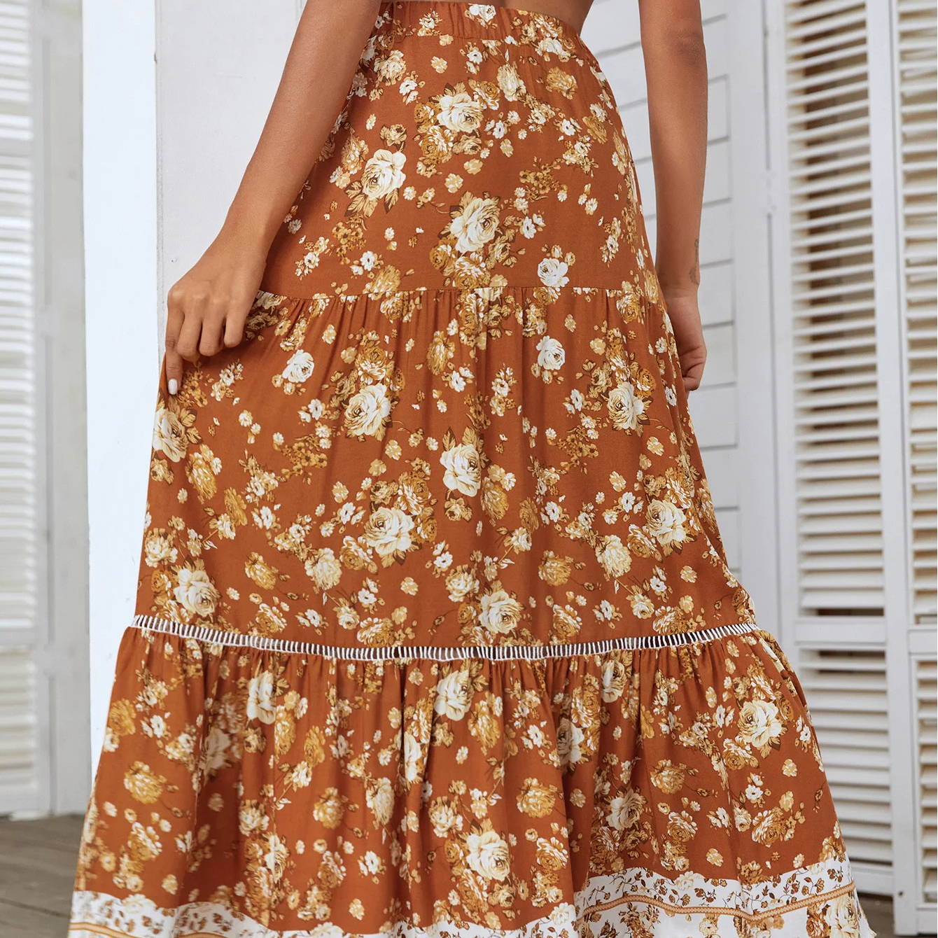Jupe bohème trapèze à volants