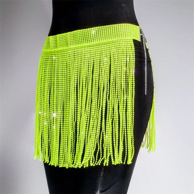 Cette jupe de plage à franges strass ajustable est conçue en taille unique dans des couleurs scintillantes et gaies. Pour la fête ou juste la plage, cette jupe super sexy vous accompagnera en révélant votre bikini ou culotte haute de la plus brillante des façons. Vous l’ajusterez taille haute ou plus basse selon vos goûts.