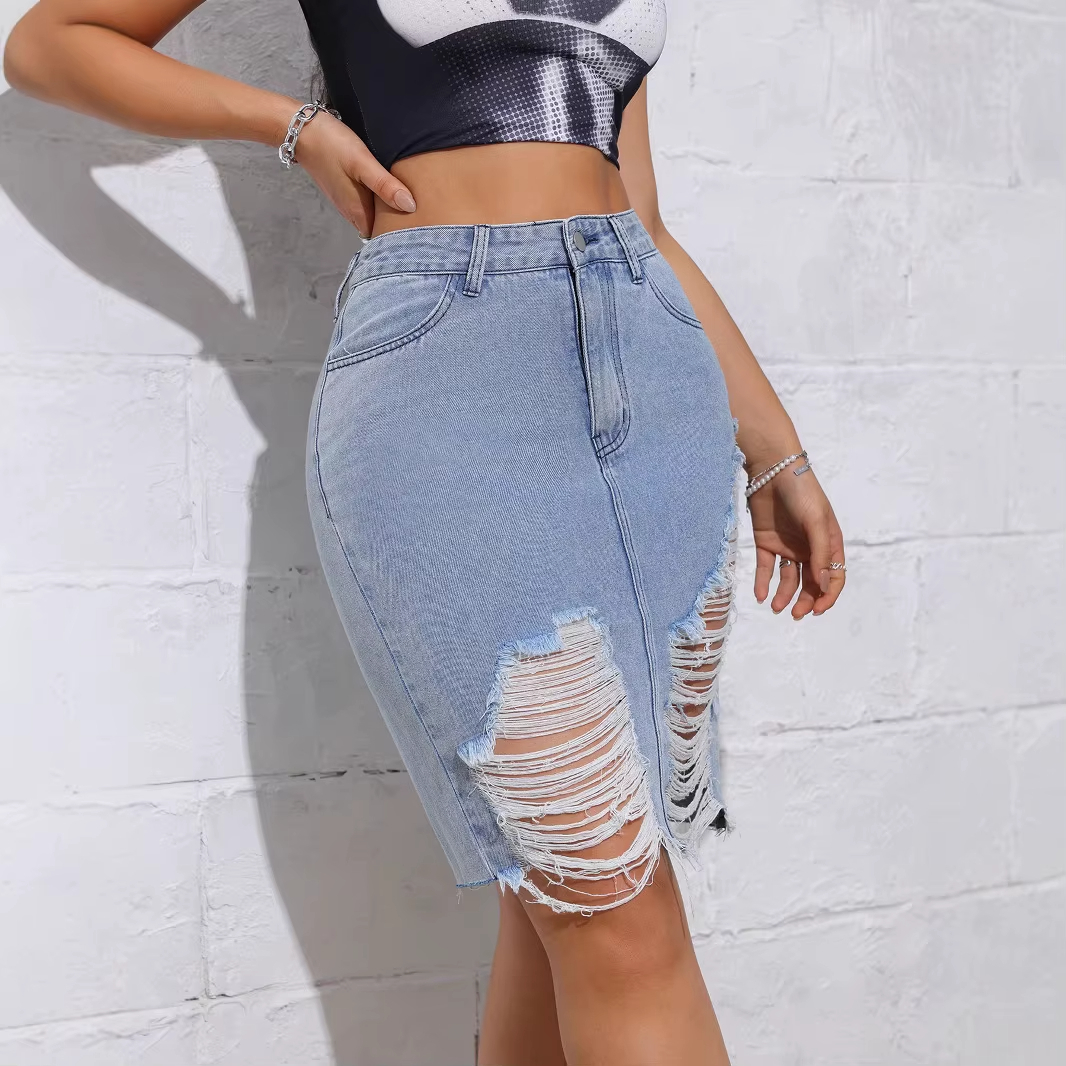 Jupe en Jean Déchirée et Fendue