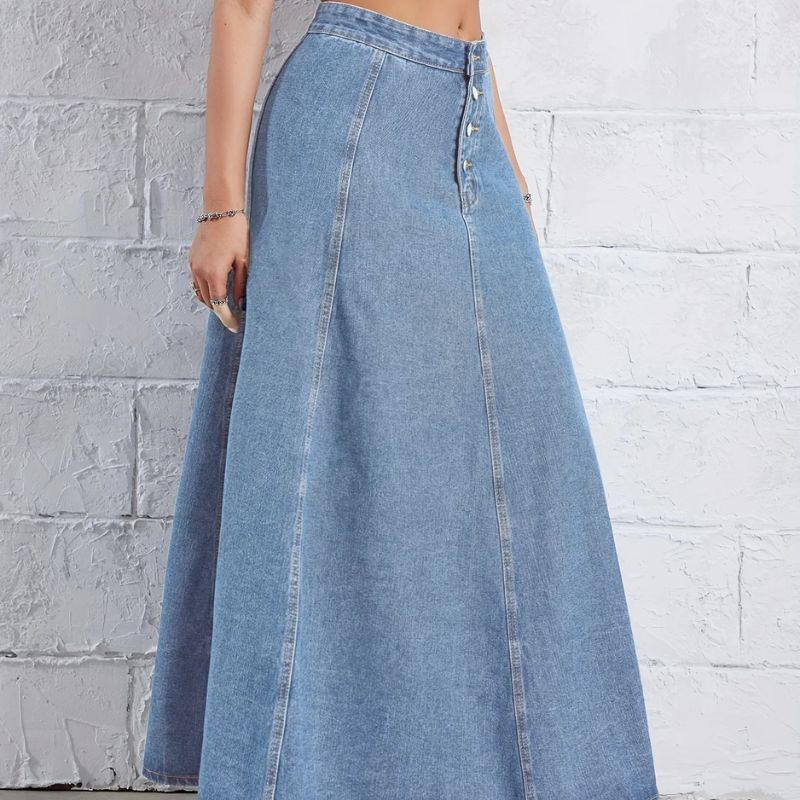 Jupe Jean Longue à Boutons avec Finitions Évasées