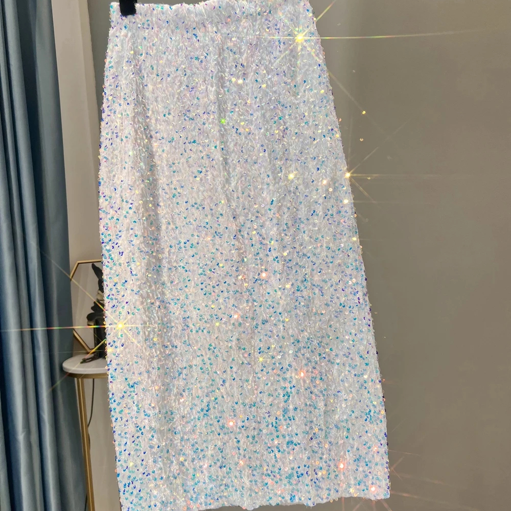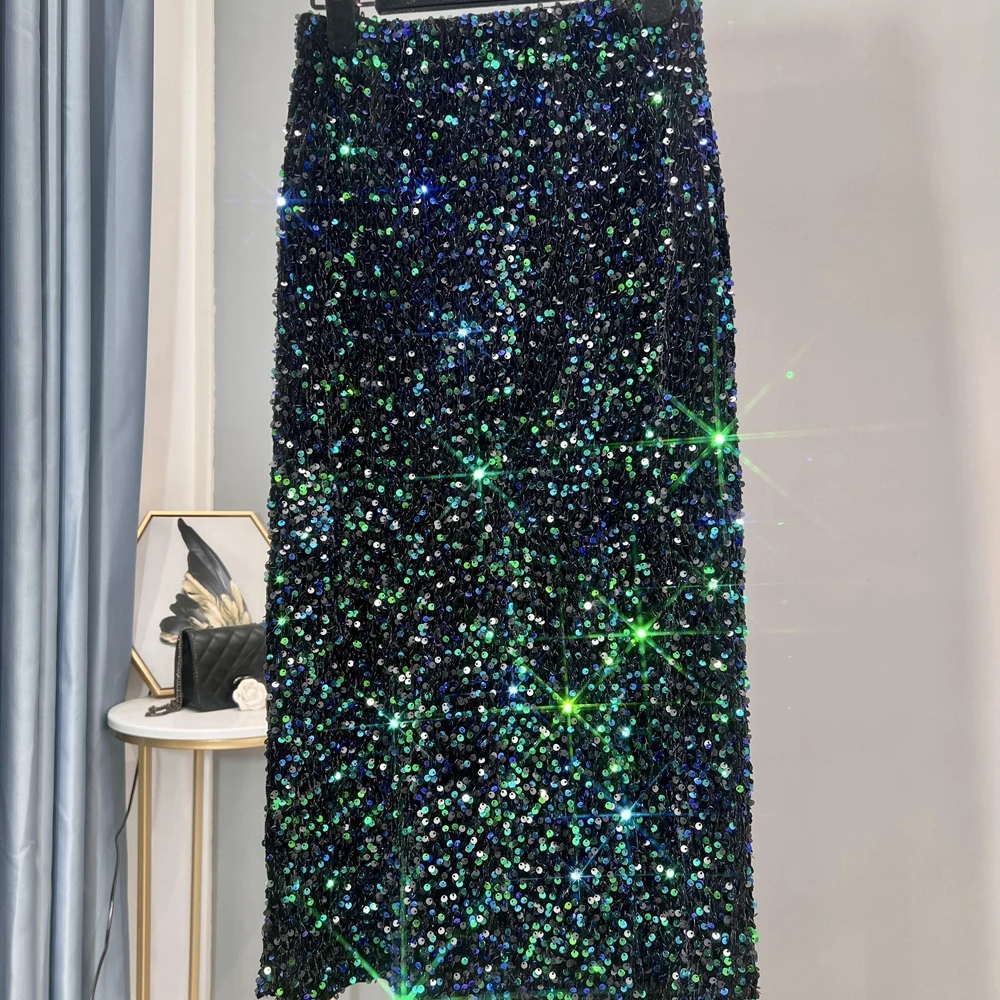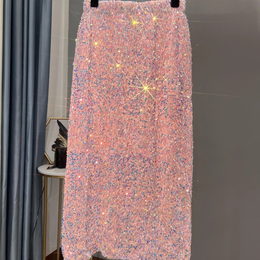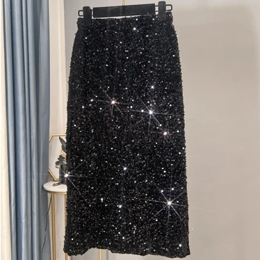 Jupe mi-longue à sequins