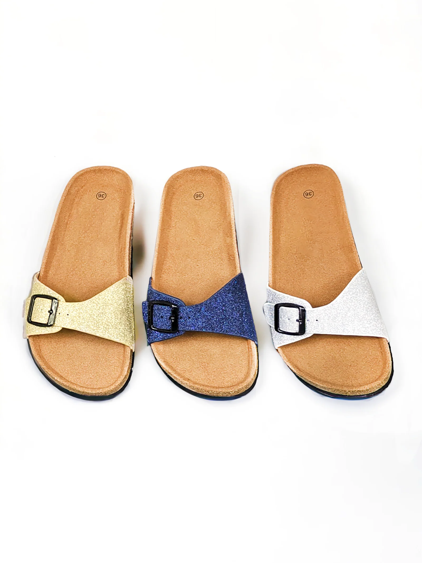 Composition : 100% polyuréthane – Motif : paillettes – Style : mules/claquettes – Couleurs : argenté – Réglables : oui – Tailles existantes : du 36 au 41