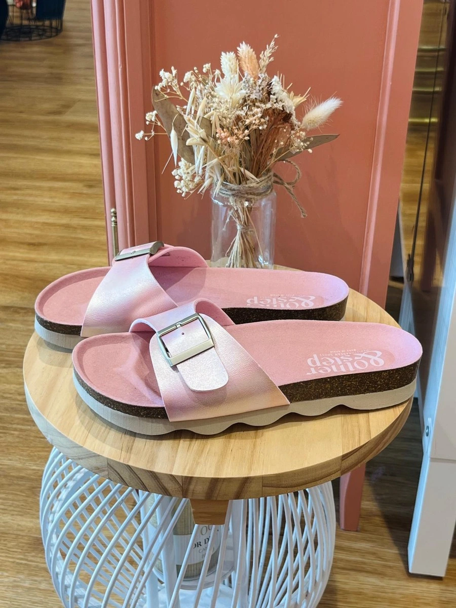 ROSY, notre jolie paire de mules de chez Another step avec sa bride large confortable et réglable.Ces sandales offrent un confort optimal grâce à leur semelle en cuir et son lit de pied anatomique. La bride ajustable assure un maintien parfait, tandis que la couleur rose pastel apporte une note féminine et tendance.