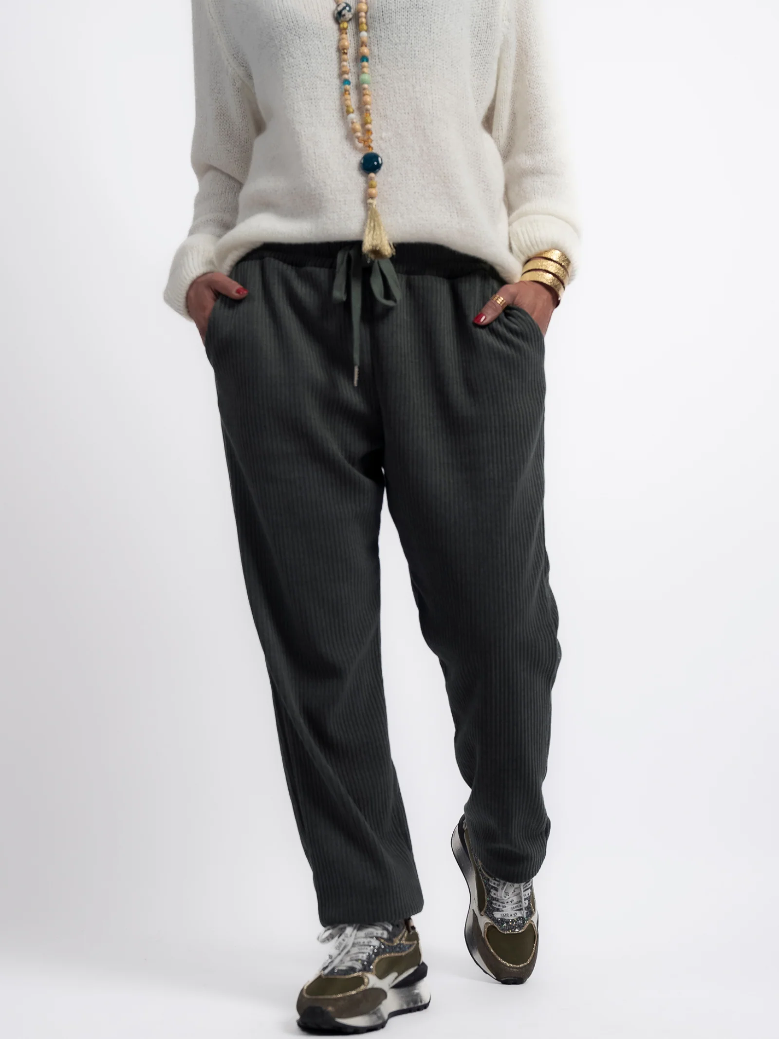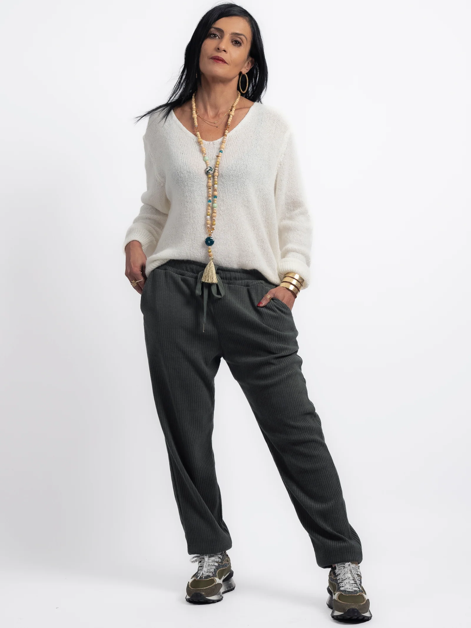 Le pantalon kaki côtelé Samantha est une pièce incontournable pour un look à la fois tendance et confortable. Sa texture côtelée ajoute du relief et une touche d’originalité, tandis que sa coupe ajustée met en valeur la silhouette. Un choix polyvalent pour celles qui aiment allier style et confort !