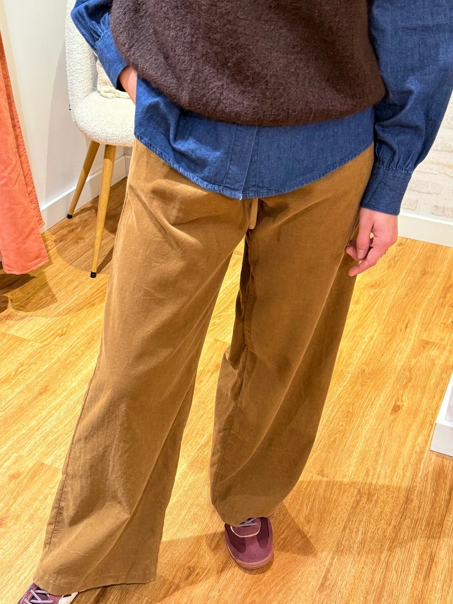 BASILE, le pantalon en velours côtelé qui allie confort et style, parfait pour un look à la fois décontracté et raffiné. Sa coupe large et fluide offre une belle liberté de mouvement, tandis que sa taille élastique avec lien de serrage assure un ajustement parfait à toutes les silhouettes.