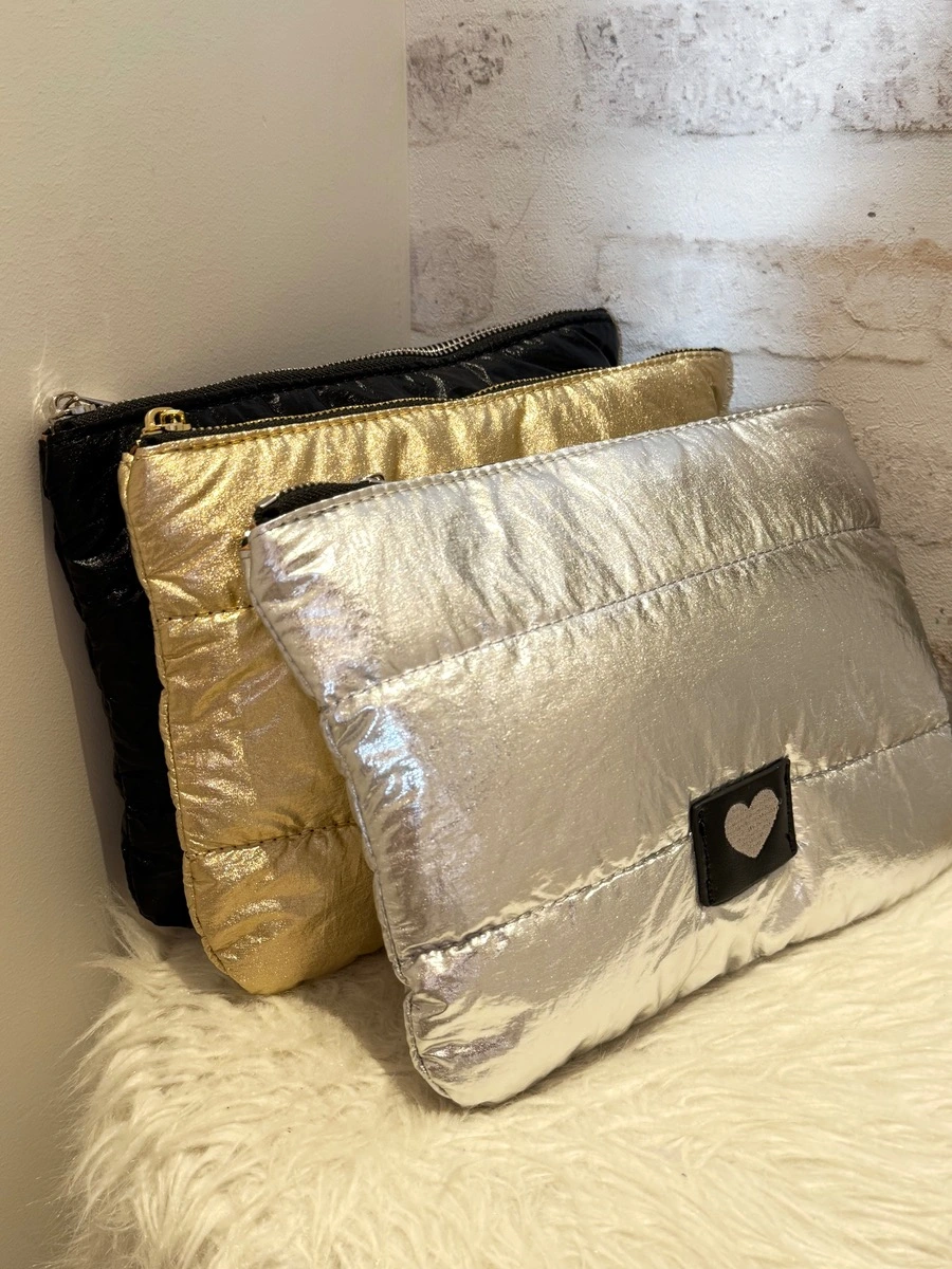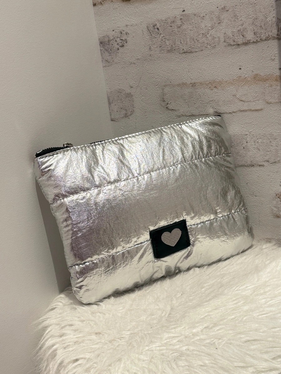 LOUNA, la pochette à la fois tendance et féminine. Le détail que l’on adore : le petit cœur pailleté sur son empiècement noir, qui apporte une note fun et élégante. Sa matière brillante illumine instantanément une tenue, tandis que son format pratique en fait un accessoire idéal au quotidien. Possibilité de le mettre dans un sac pour la transporter.