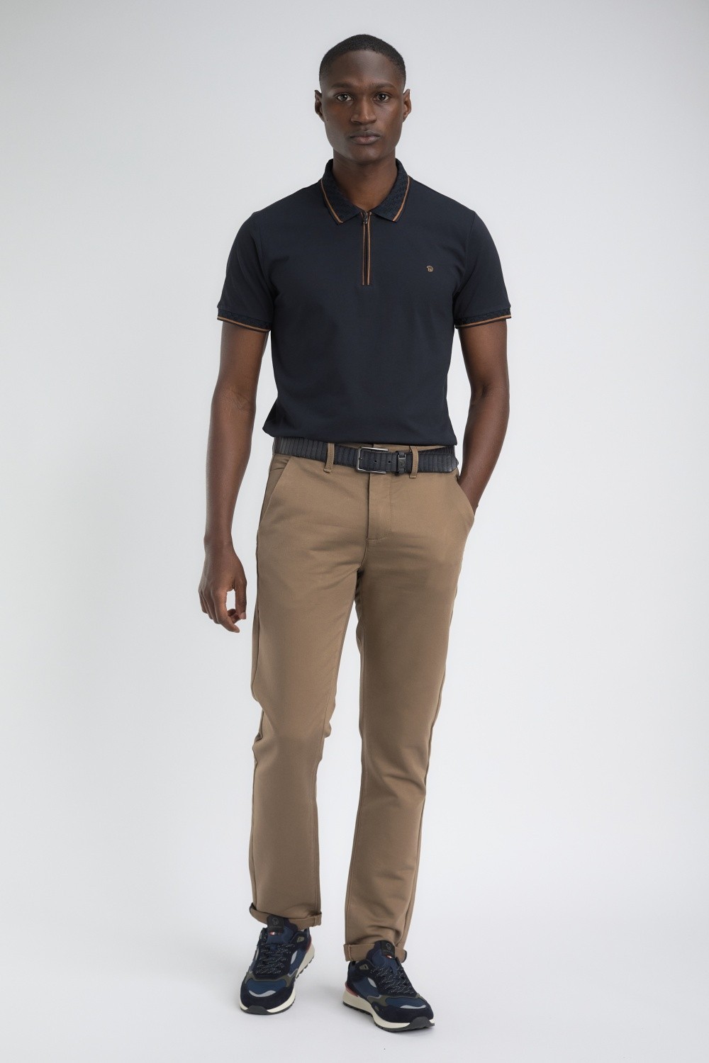 Idéal pour les hommes qui aiment les vêtements bien coupés sans en faire trop, le modèle Gatwick séduit par son allure sobre et contemporaine. Sa ligne structurée valorise la silhouette, tout en offrant une liberté de mouvement agréable. Le col polo classique, accompagné d’une patte de boutonnage discrète, ajoute une touche de raffinement qui fait la différence.