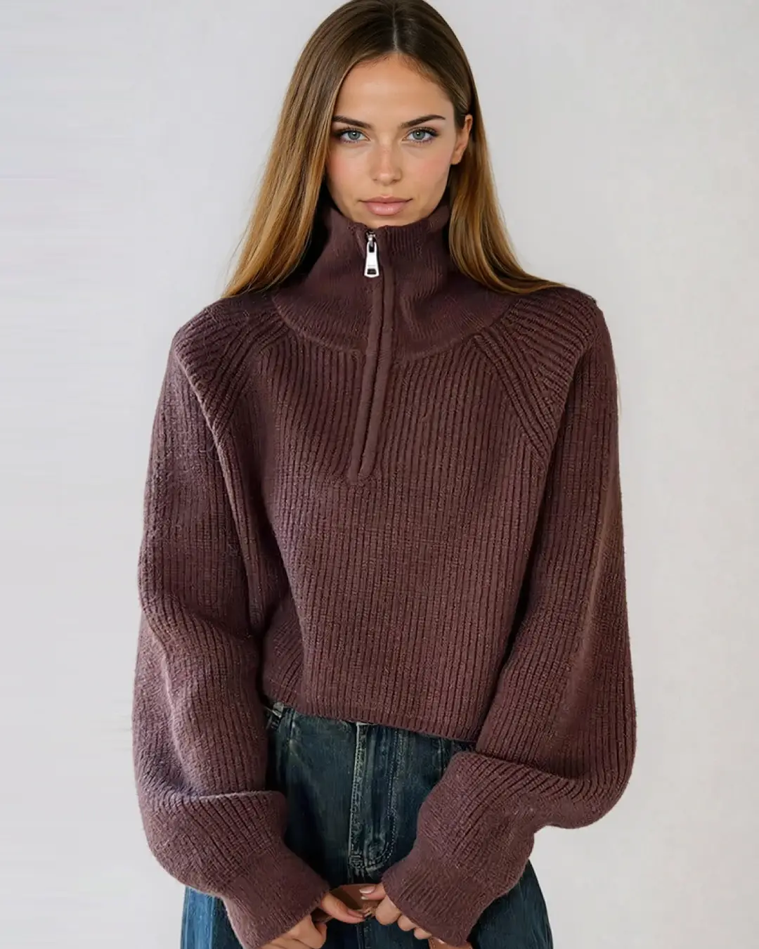 Ce pull à zip court est le parfait allié pour un look à la fois rétro et tendance. Sa maille douce et chic, son col cheminée ajustable et ses détails soignés vous assurent confort et style tout au long de la saison. C’est un incontournable pour celles qui recherchent une pièce intemporelle et facile à porter, idéale pour affronter le froid tout en restant à la mode.