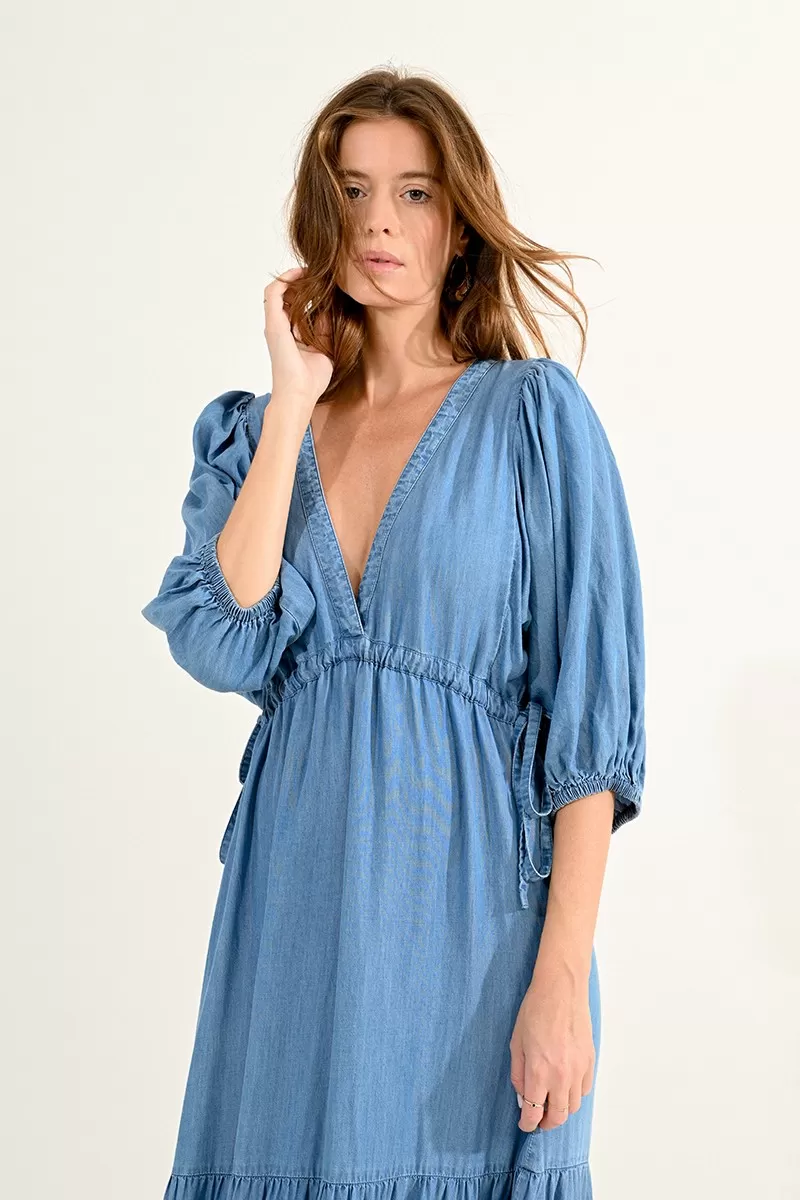 Les manches ballons complètent parfaitement cette robe, offrant un look à la fois tendance et sophistiqué. Elles apportent une touche de volume aux épaules, équilibrant ainsi la silhouette. Idéale pour toutes les occasions, qu’il s’agisse d’un mariage, d’une soirée ou d’une journée estivale, la Robe à volants de Molly Bracken s’adapte à toutes vos envies.
