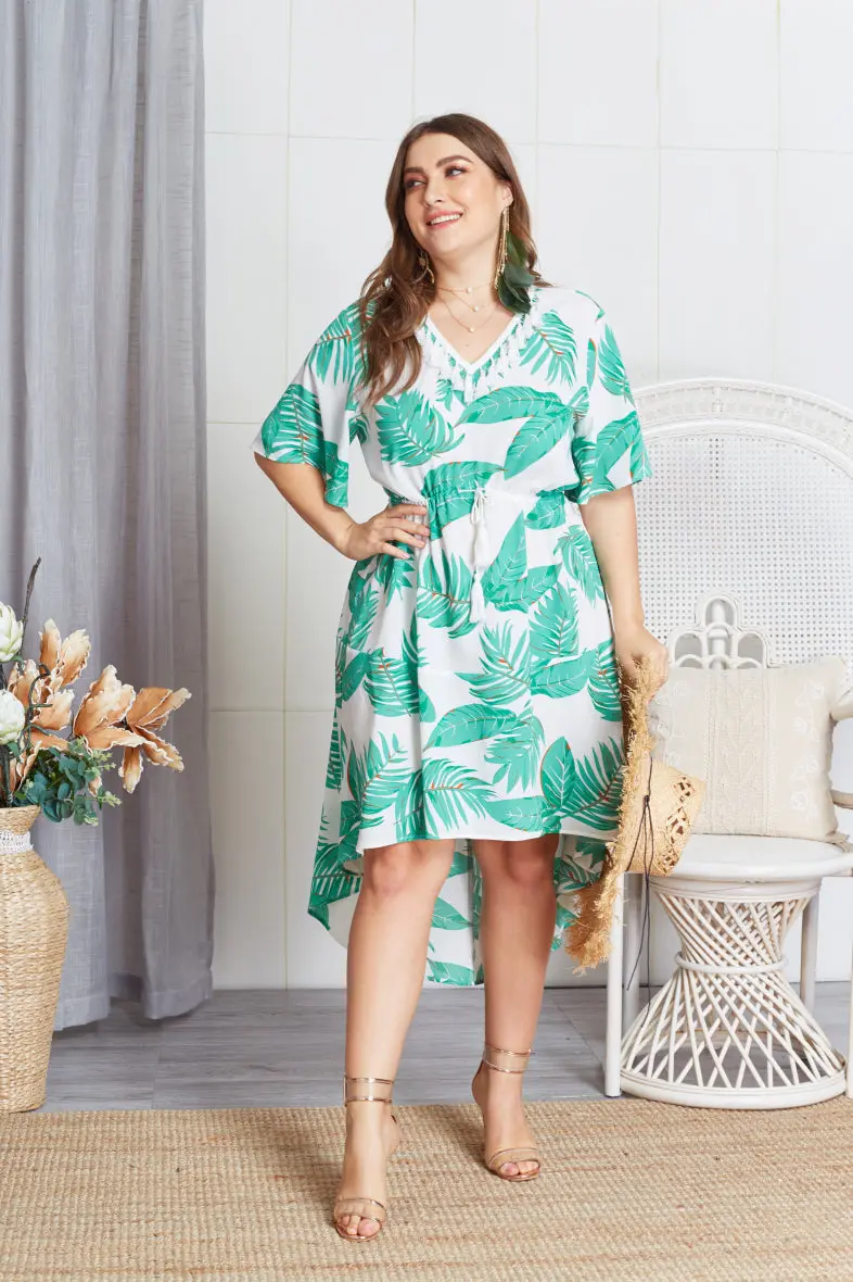 Sublimez votre journée en portant notre Robe à Motifs Tropical Blanc Vert !
