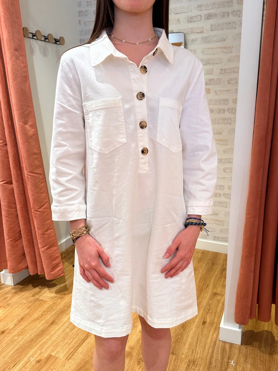 JOSELIA, la robe chemise de chez Ycoo aux manches 3/4. On aime son style à la fois simple et élégant, parfait pour une tenue décontractée mais soignée. Sa coupe droite et fluide s’arrête au-dessus du genou, ce qui lui donne une allure légère et féminine. Cette robe est idéale pour une journée, un brunch ou une sortie estivale….