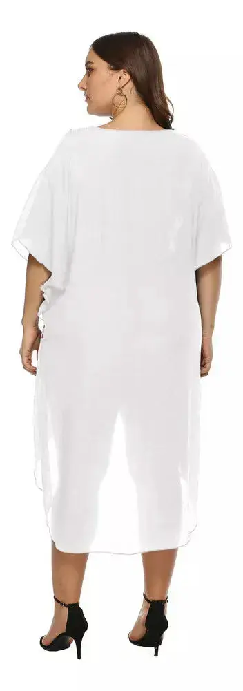 Notre robe de plage grande taille est une pièce polyvalente qui peut être associée à votre bikini ou tankini préféré pour un look de plage chic