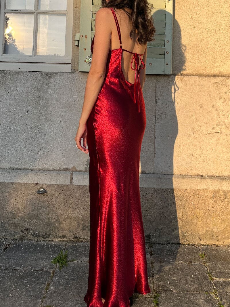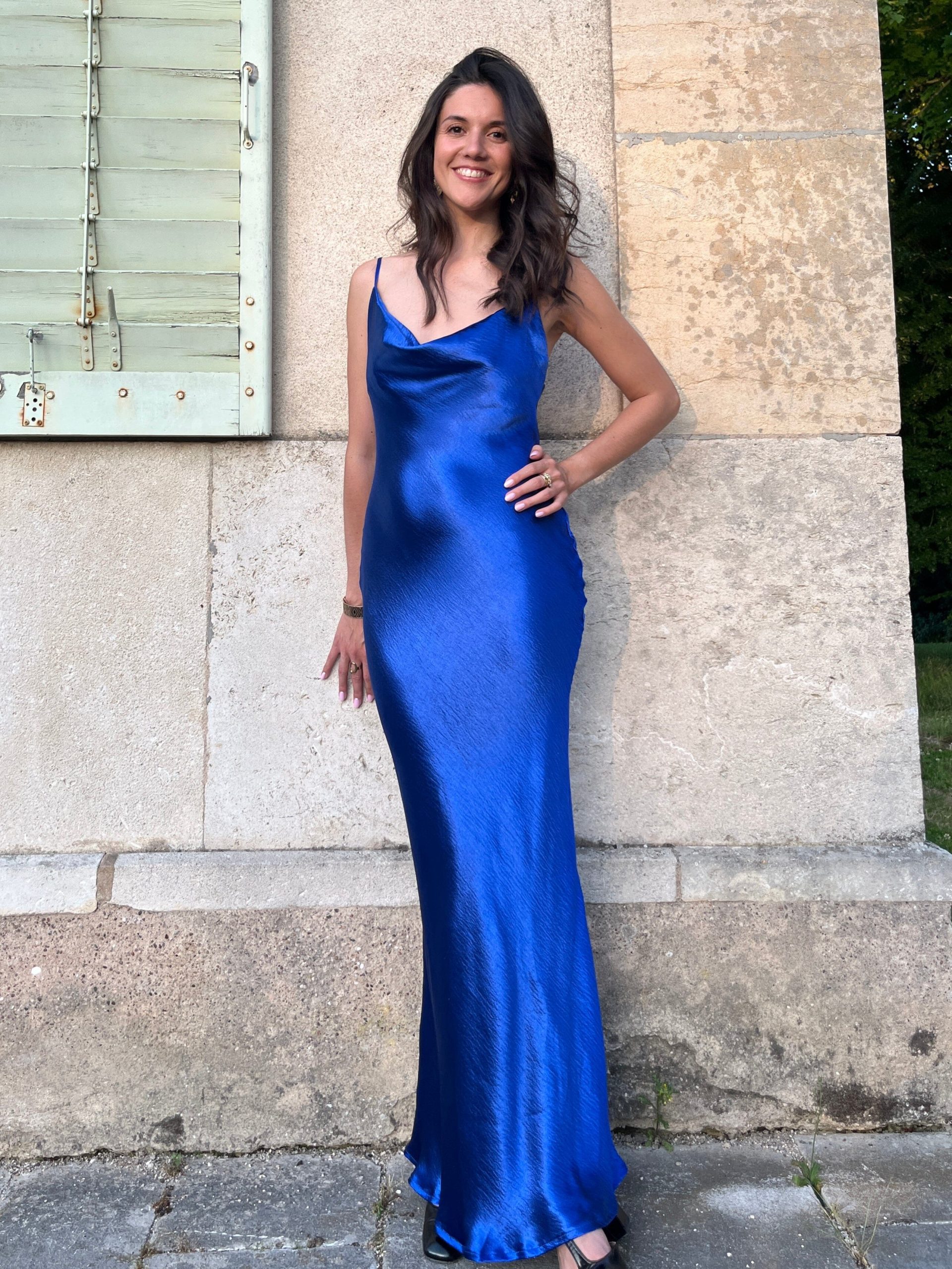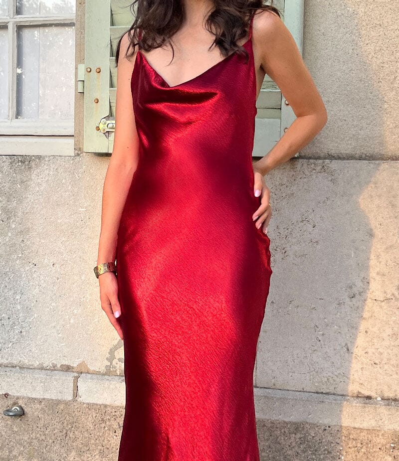 Robe longue en satin et dos nu plongeant, tombé fluide longueur chevilles. Matière semi-épaisse et satinée pour un rendu exceptionnel et luxueux. Ultra douce agréable à porter. Encolure carrée effet drapé, bretelles spaghetti réglables qui se rejoignent dans le dos et fermeture à glissière dissimulée sur un côté. Entièrement doublée à l’intérieur. Disponible dans plusieurs coloris, cette robe fera de vous la reine de la soirée en toute élégance, tout en mettant en valeur votre silhouette.