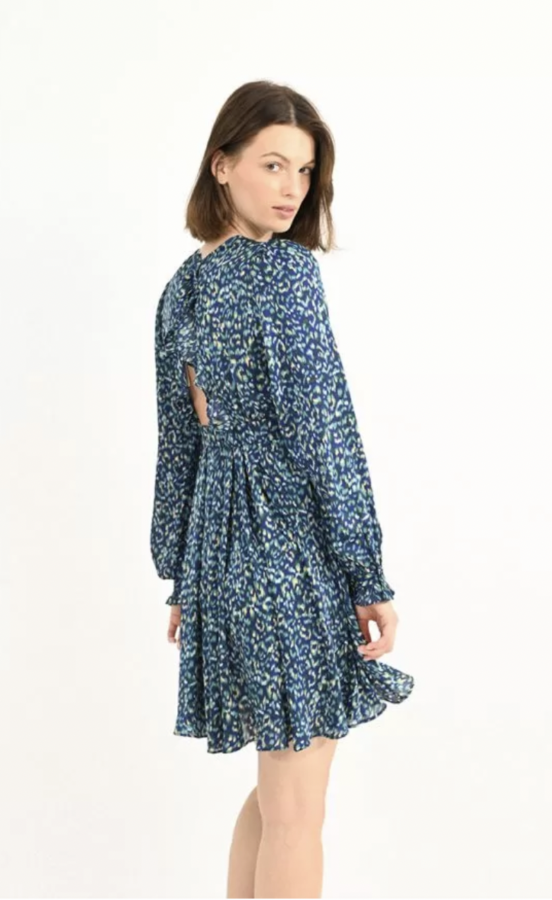 Conçue avec un soin méticuleux, cette robe combine une coupe flatteuse à des détails délicats et raffinés. Le devant de la robe présente des motifs subtils et élégants qui apportent une touche de finesse, tandis que la découpe audacieuse dans le dos révèle une sensualité discrète, mêlée à une pointe de mystère qui ne manquera pas de charmer.