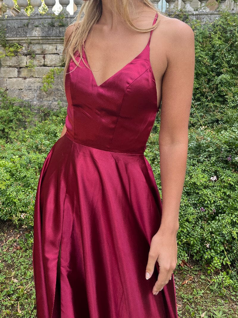 La Robe Dos Nu Fendue est confectionnée en satin doublé, offrant un tombé fluide et luxueux qui sublime chaque mouvement.