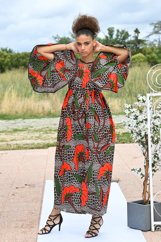 Robe longue en wax avec fente Félina