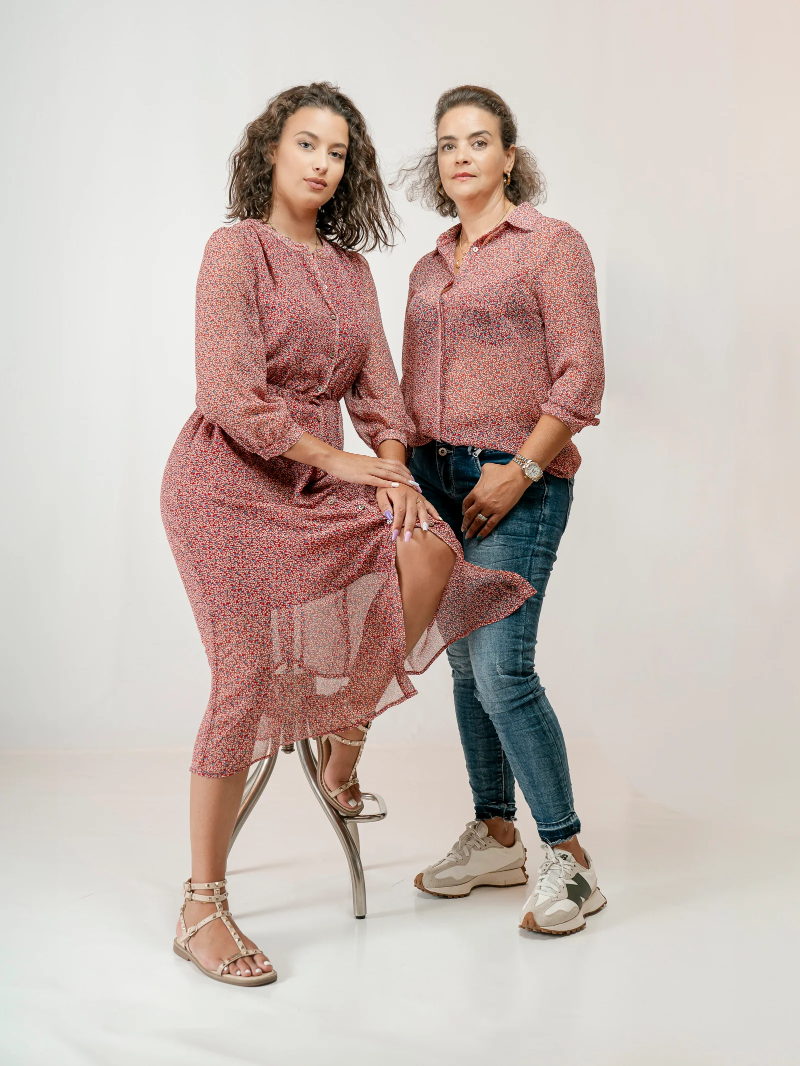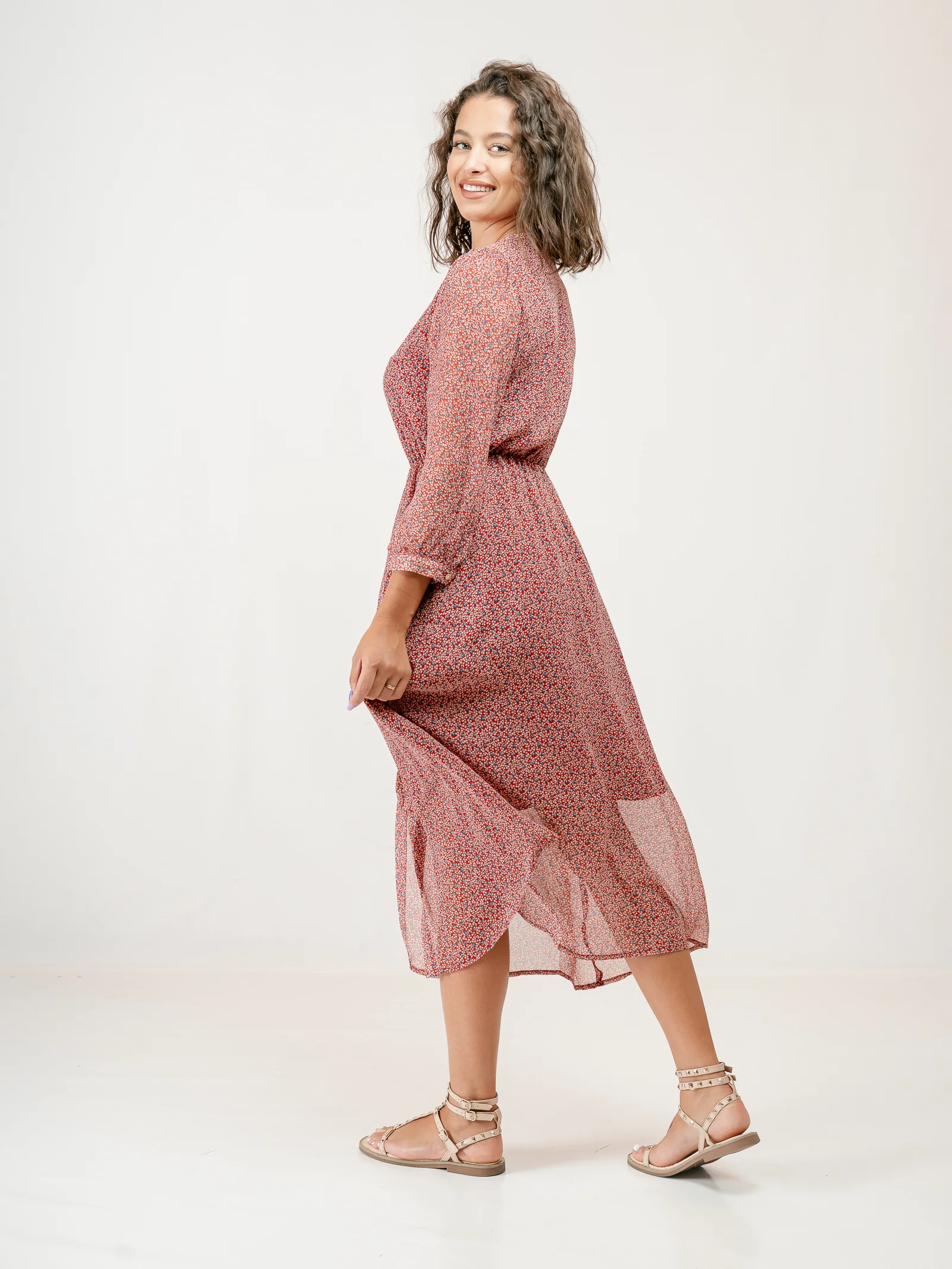 Découvrez la robe chemise Pinson rouge et son imprimé tacheté de rouge, beige et bleu. On adore sa fluidité, sa légère transparence, sa boutonnière dissimulée et sa poche discrète