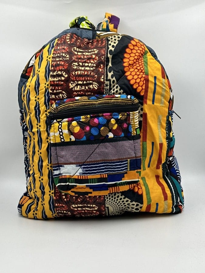 Structure matelassée et résistante comportant un compartiment de grande taille, maintenu par deux bretelles ainsi qu’un second compartiment de petite taille sur le devant. Système de fermeture à glissière.